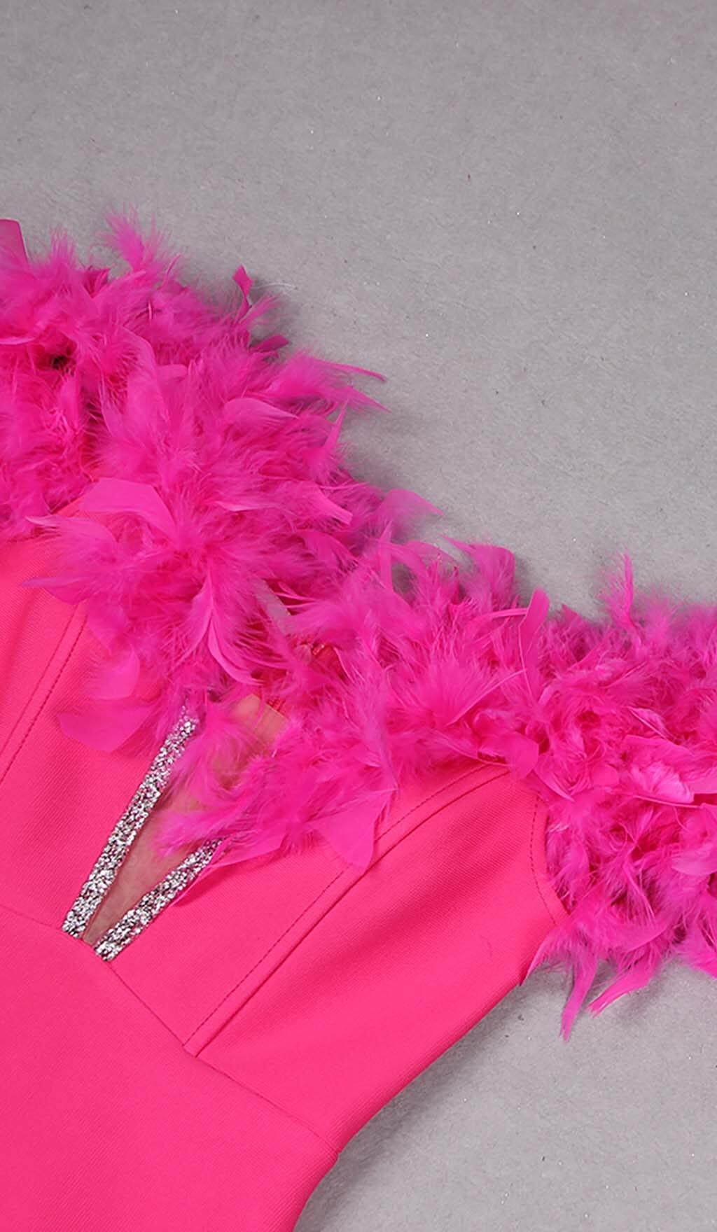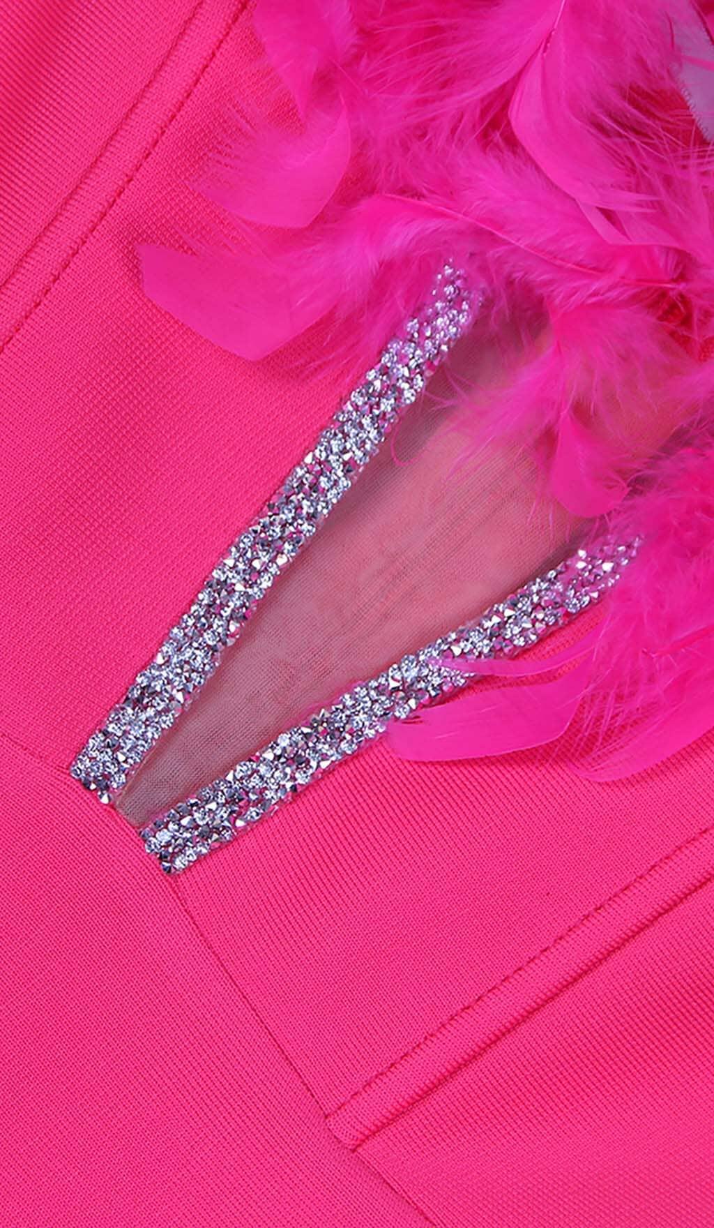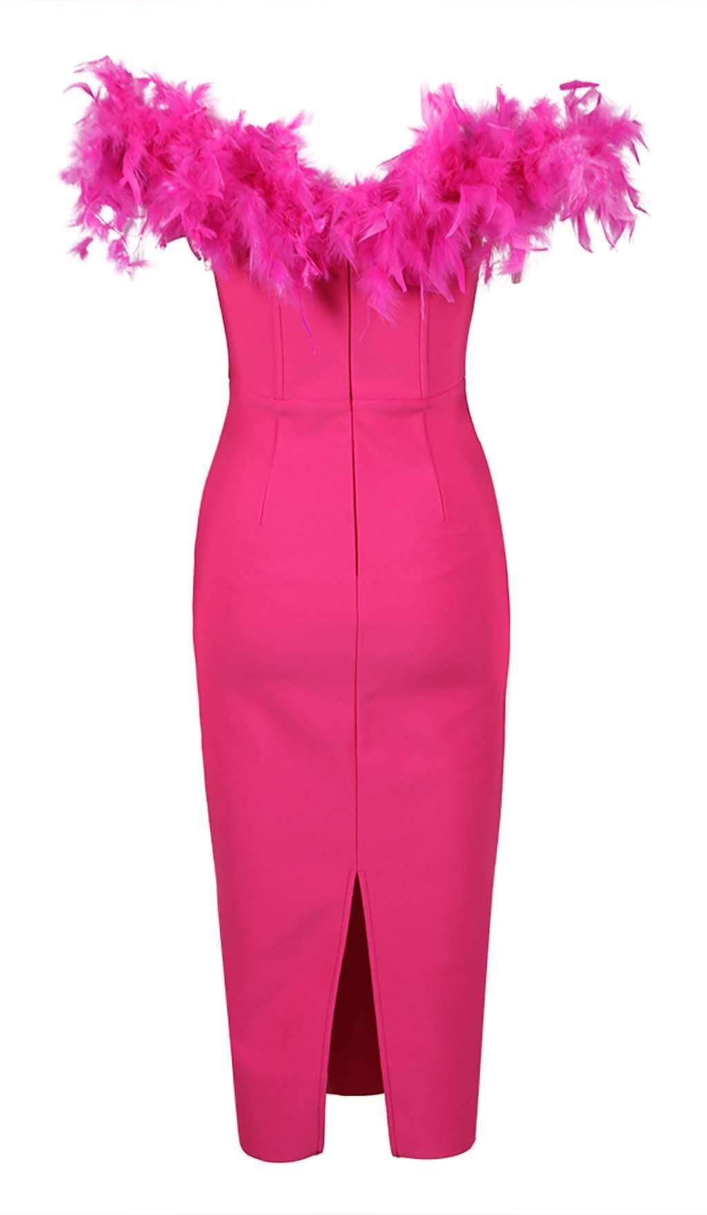 FEATHER PLUNGE MIDI DRESS IN ROSE