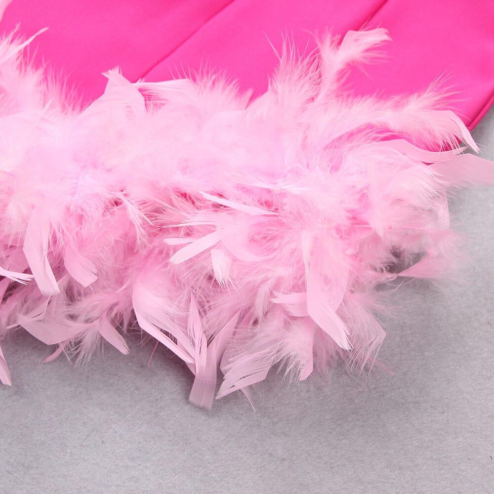 FEATHER PLUNGE MINI DRESS IN RED