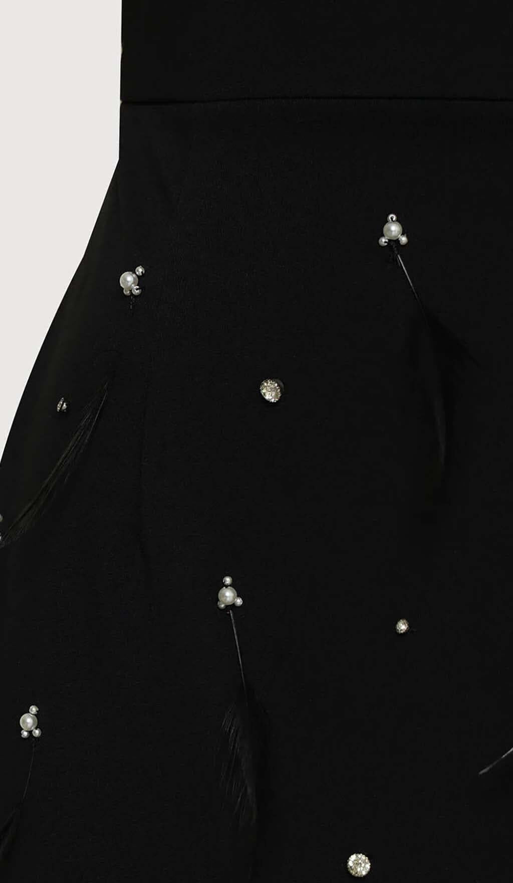 FEATHER RHINESTONES BODYCON MIDI DRESS IN BLACK