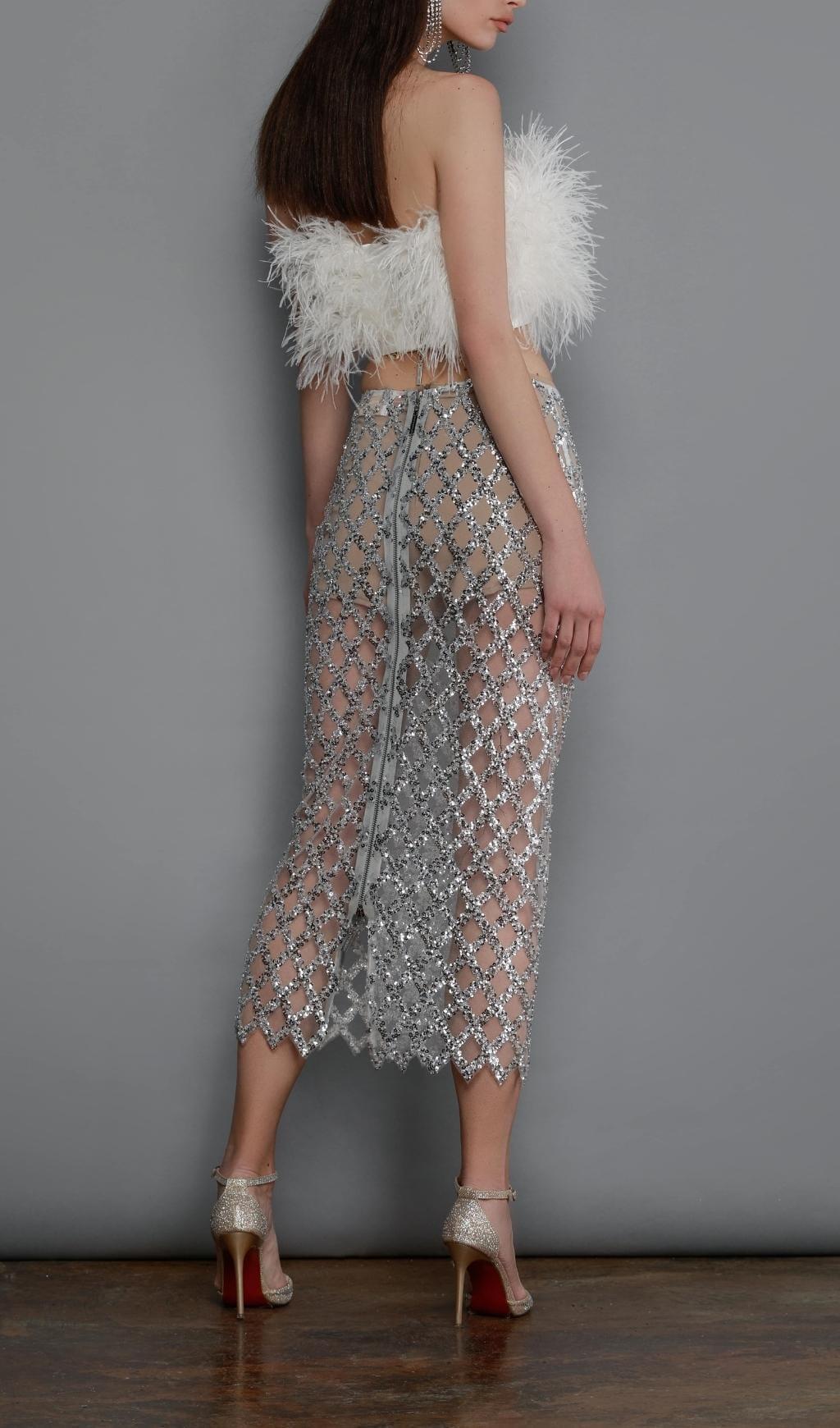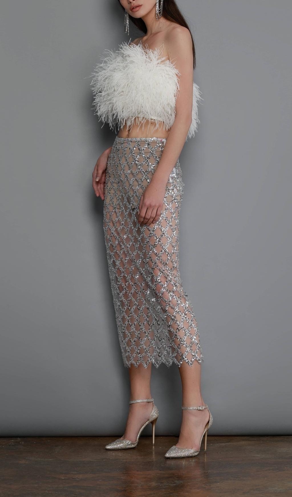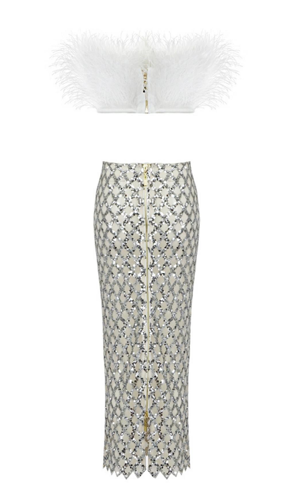 FEATHER SEQUIN TWO PIECE SET IN WHITE