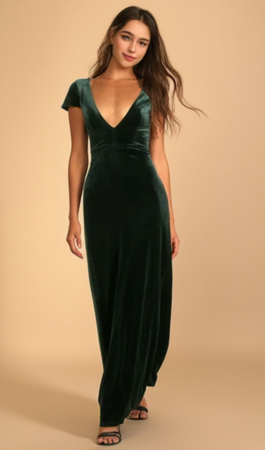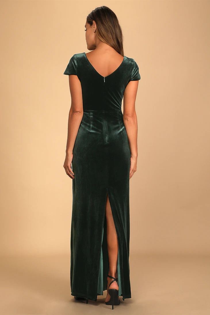 When every detail is in place, the only thing left to do is slip into the Feeling Flawless Emerald Green Velvet V-Neck Maxi Dress and dance the night away! Deep emerald green stretch velvet shapes a flattering plunge bodice with princess seams, framed by short cap sleeves. High waist tops the column maxi skirt that has a slit at back.