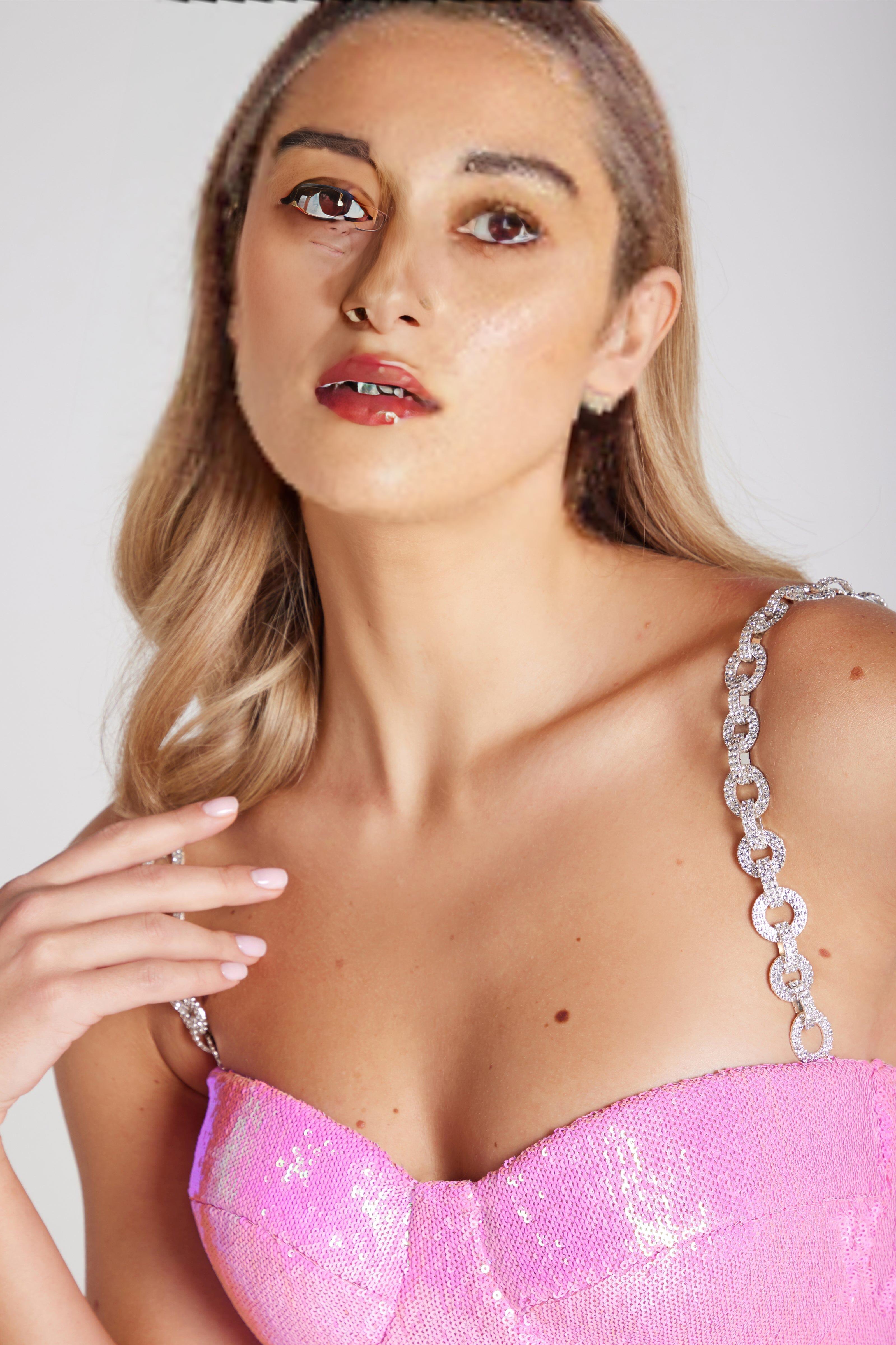 Get ready to steal the show in our euphoric iridescent pink design - the Sequin Feather Belt Mini Dress. This dazzling mini dress is covered in pink sequins, making you shine from every angle. But it's not just the sequins that make this dress stand out. Here's what sets it apart: