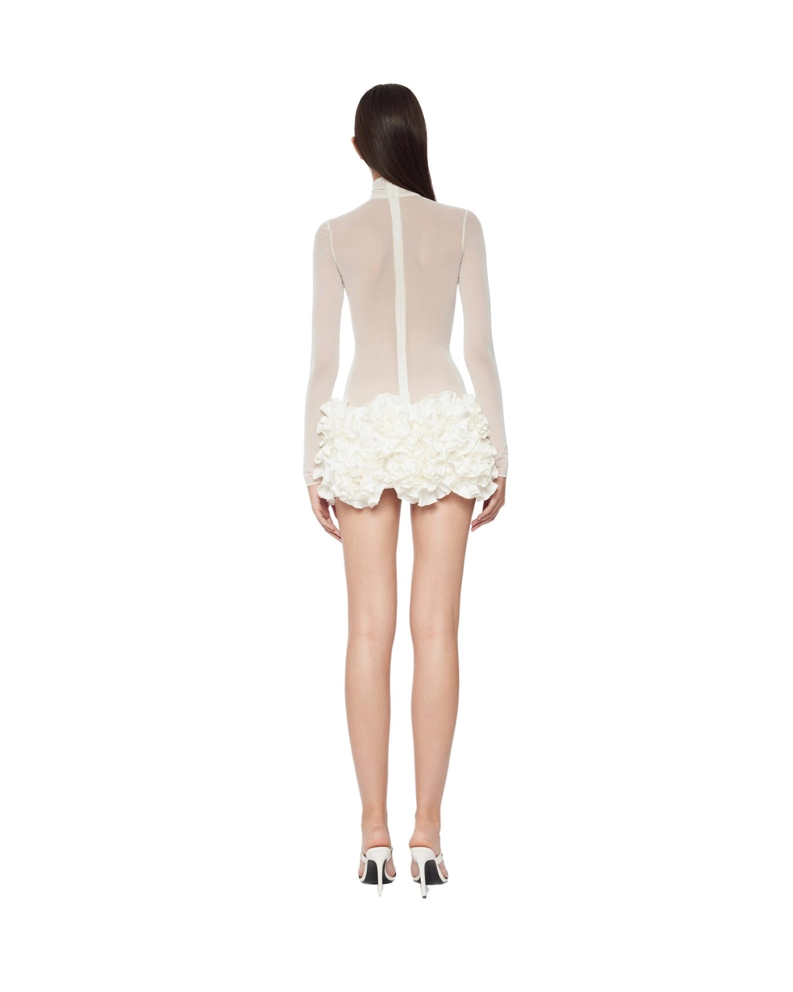 Fionna Floral Mesh Long Sleeve Mini Dress - White
