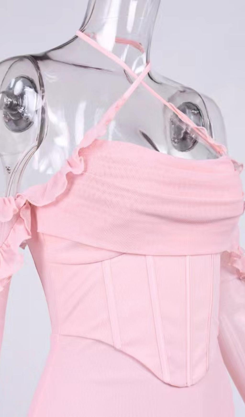 RUFFLE CORSET BODYCON MINI DRESS IN PINK