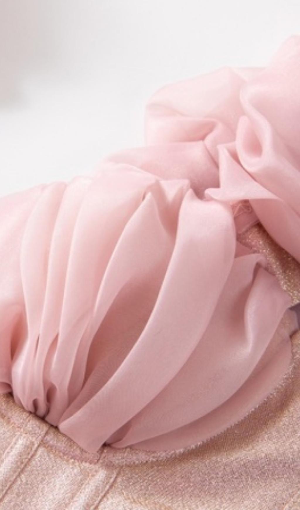This dress is about the languid and sexy shades of female pink. Bubble sleeves are designed to be worn in two ways, one with bare shoulders and one without.