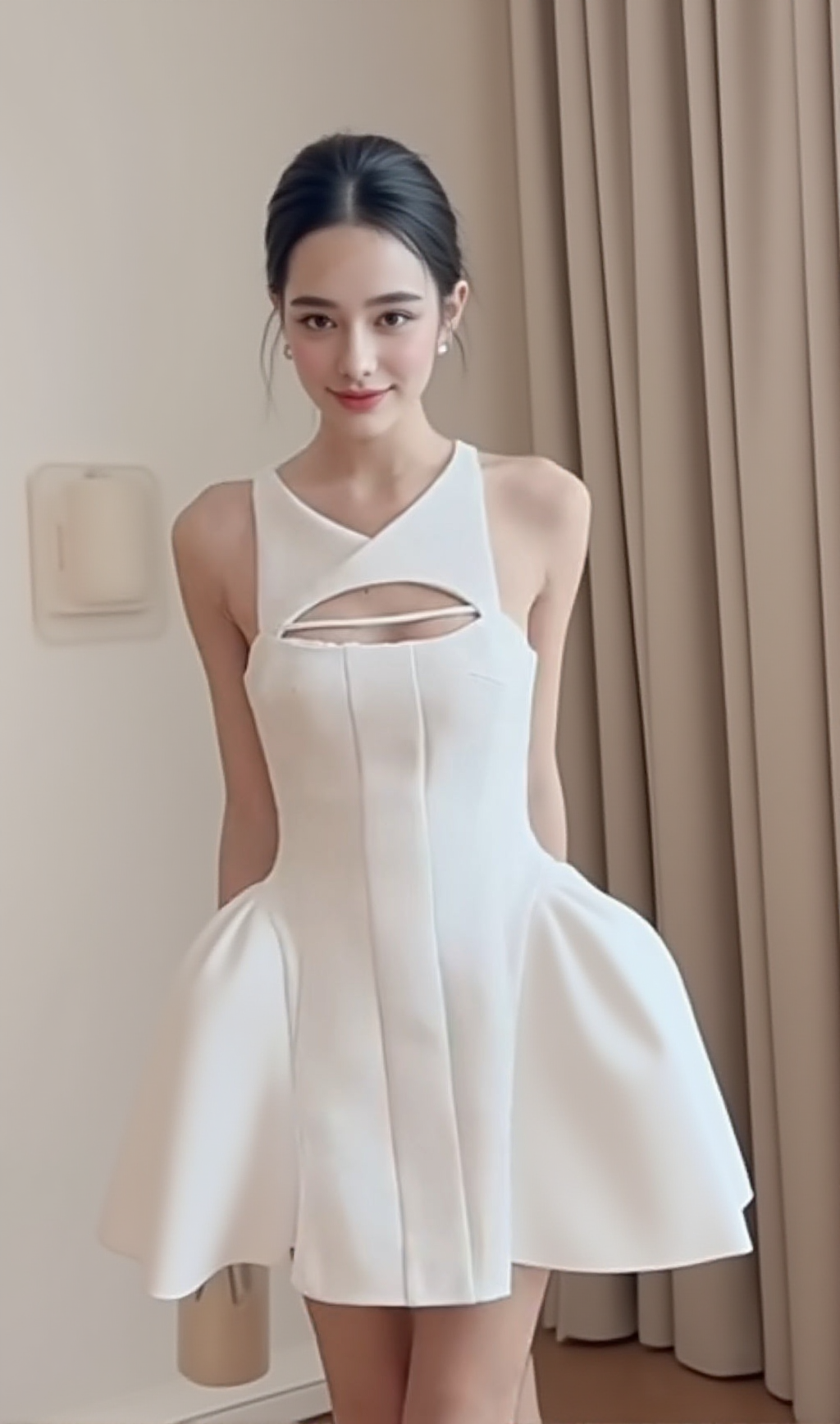This dress features a sleeveless design with strategically placed cut-outs that add an alluring touch to the silhouette. The corset-inspired bodice cinches the waist, accentuating your curves and providing a flattering fit. Made from high-quality fabric, the dress drapes gracefully, highlighting your figure while offering comfort and ease of movement.