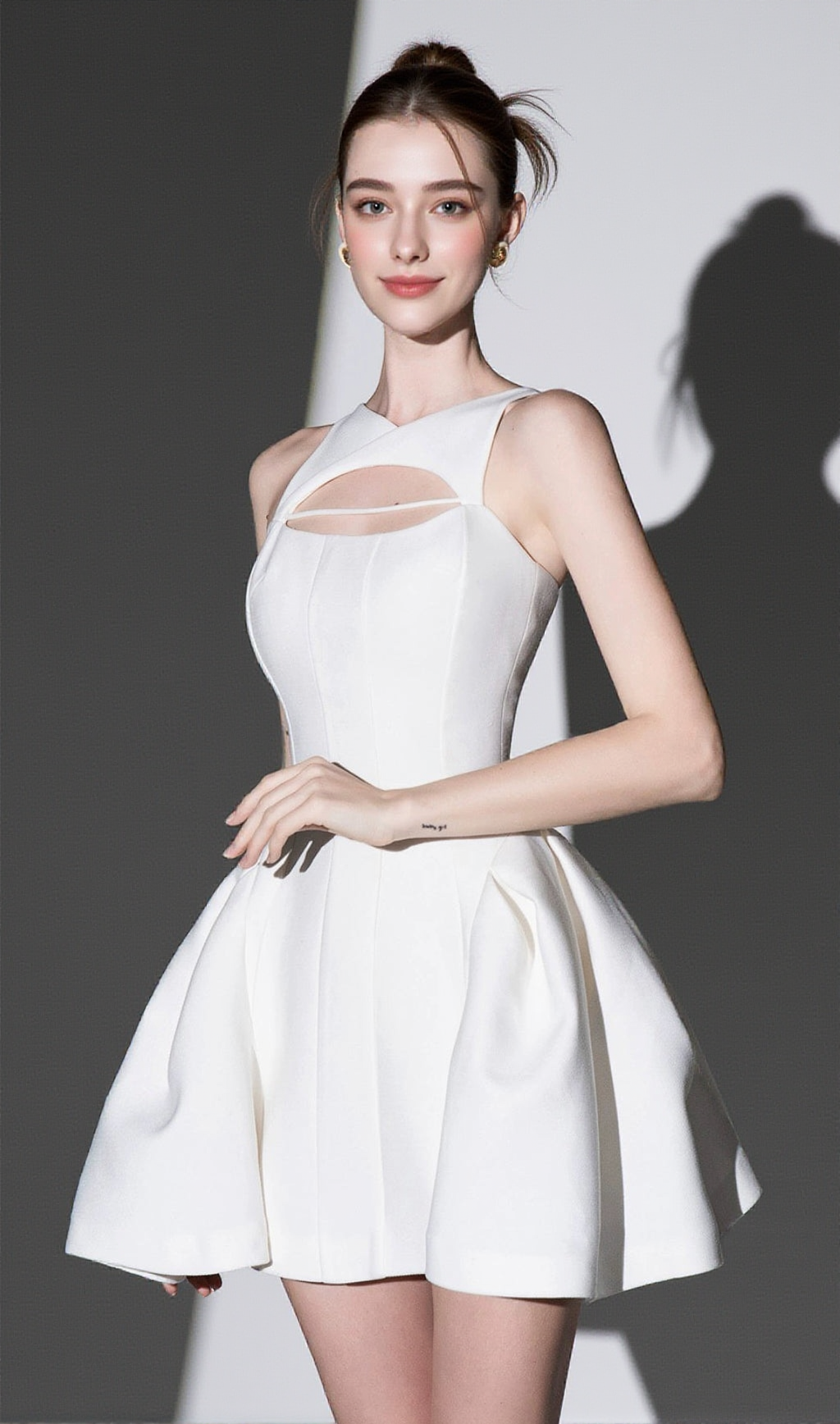 CUT-OUT SLEEVELESS CORSET MINI DRESS IN WHITE