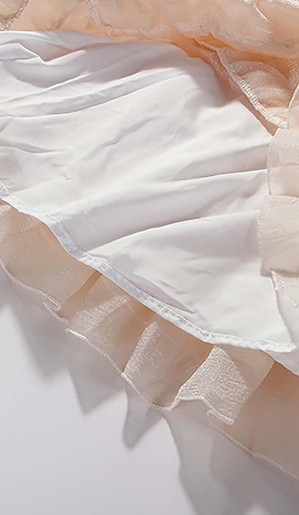 Don't miss out on this fabulous FLARED BUBBLE MINI DRESS IN WHITE. Order yours today and experience the perfect combination of sweetness and chicness!