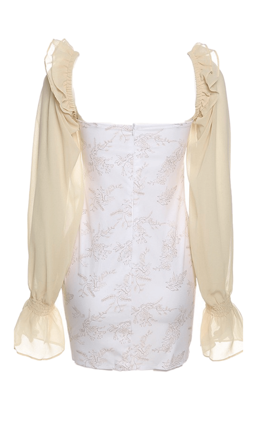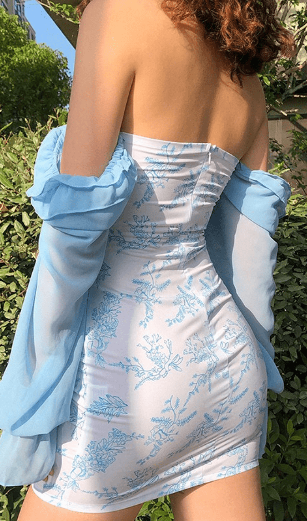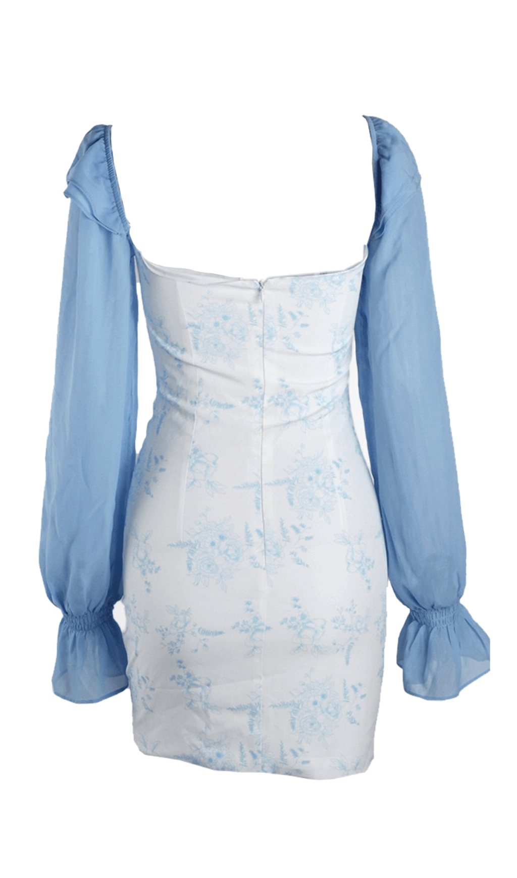 BLUE FLARED SLEEVE PRINT MINI DRESS