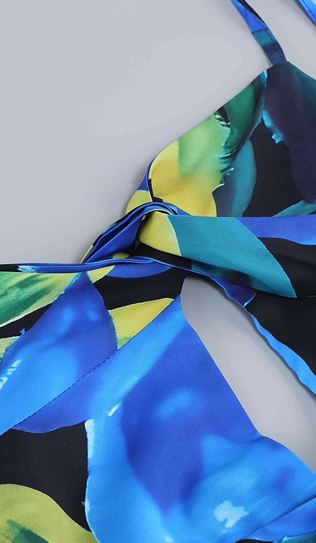 FLORAL BACKLESS MAXI DRESS IN BLUE