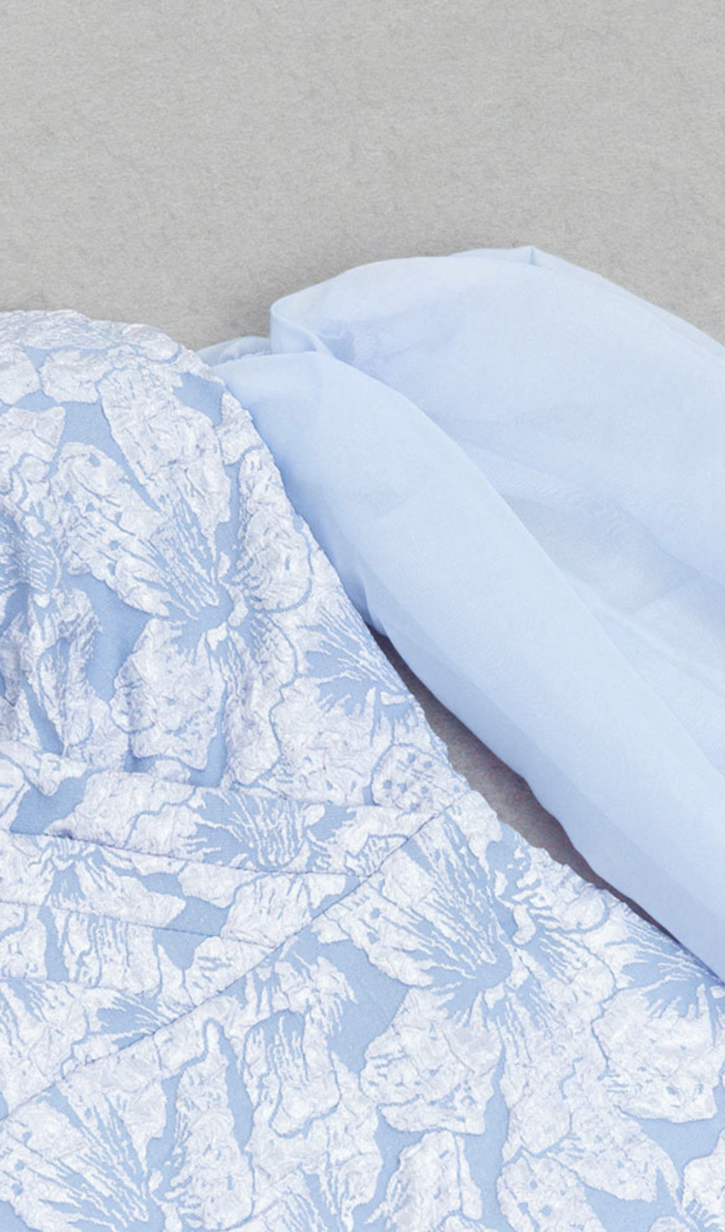 This light blue dress features floral brocade, off - shoulder design, sheer sleeves, and a pearl - belted waist. It��s a unique hoco dress, perfect for homecoming events. Ideal as hoco dress inspo, it suits fall gatherings, new years eve parties, or elegant outings. The intricate pattern and chic details help you dress to impress, ensuring you stand out at any formal or semi - formal occasion.