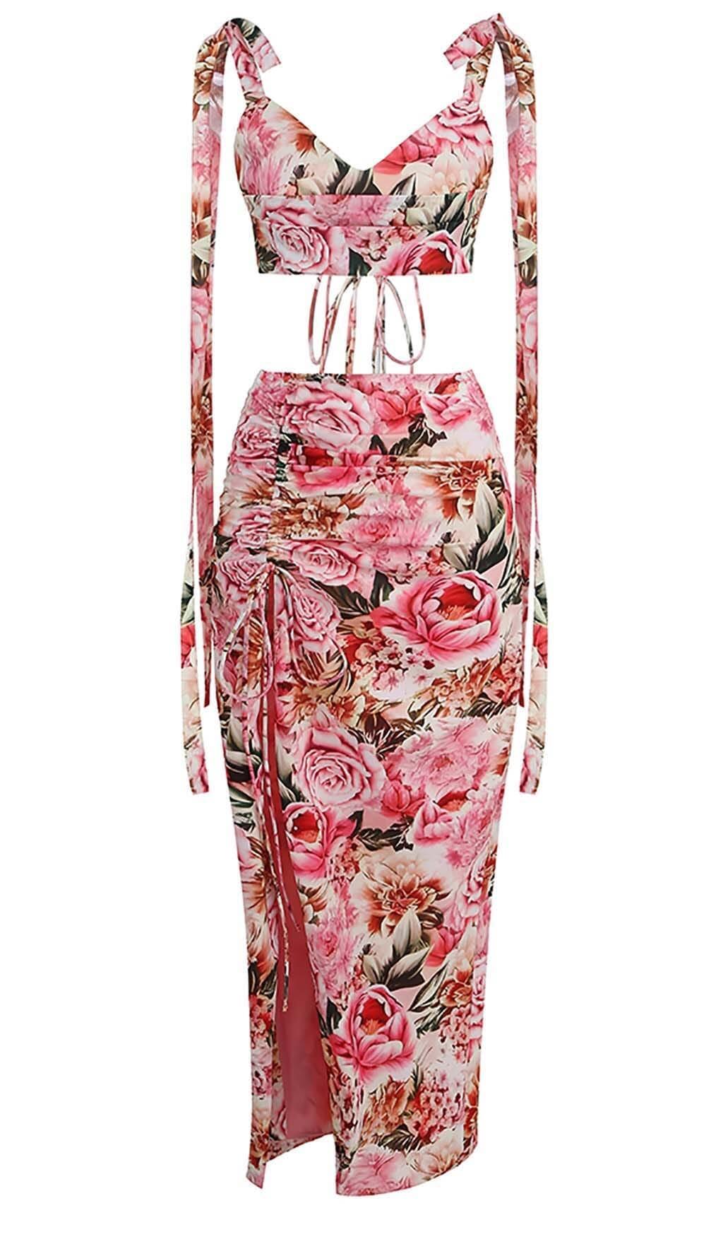 FLORAL DESIGN TWO PIECE SET IN PINK
