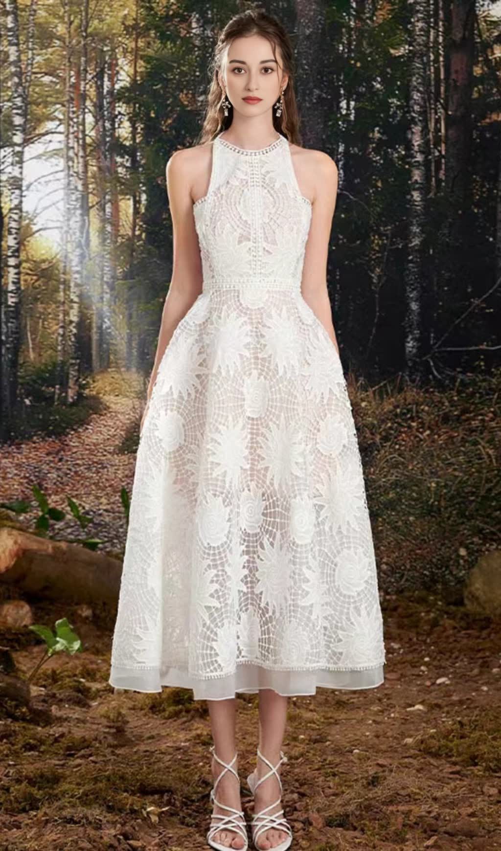 This stunning dress features delicate floral embellishments and a beautiful lace design, perfect for any special occasion. Stand out in style and exude confidence with this must-have dress!