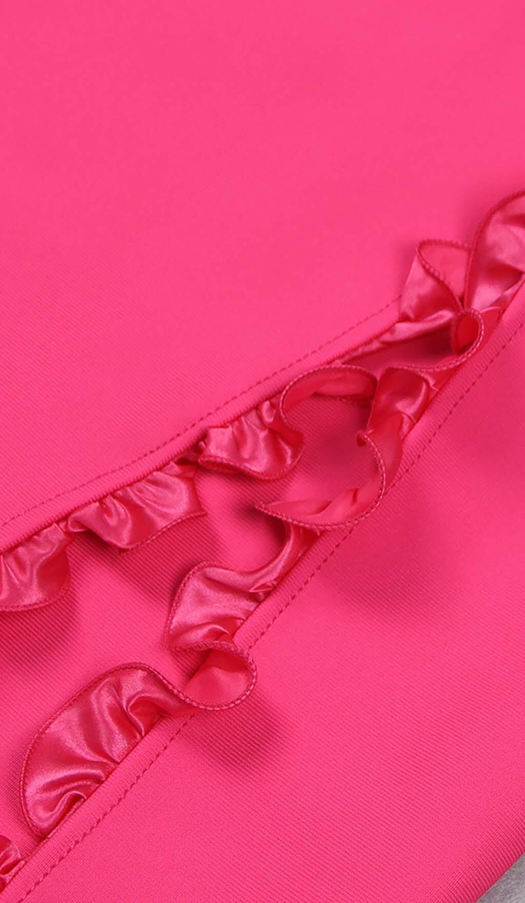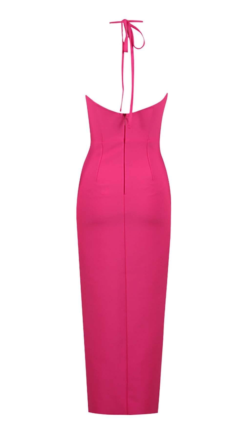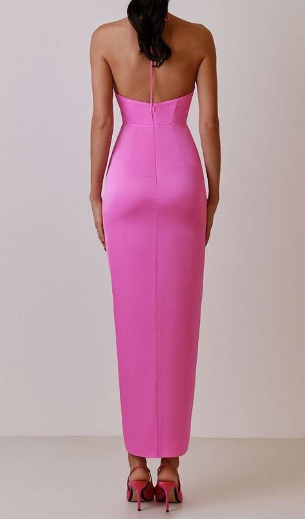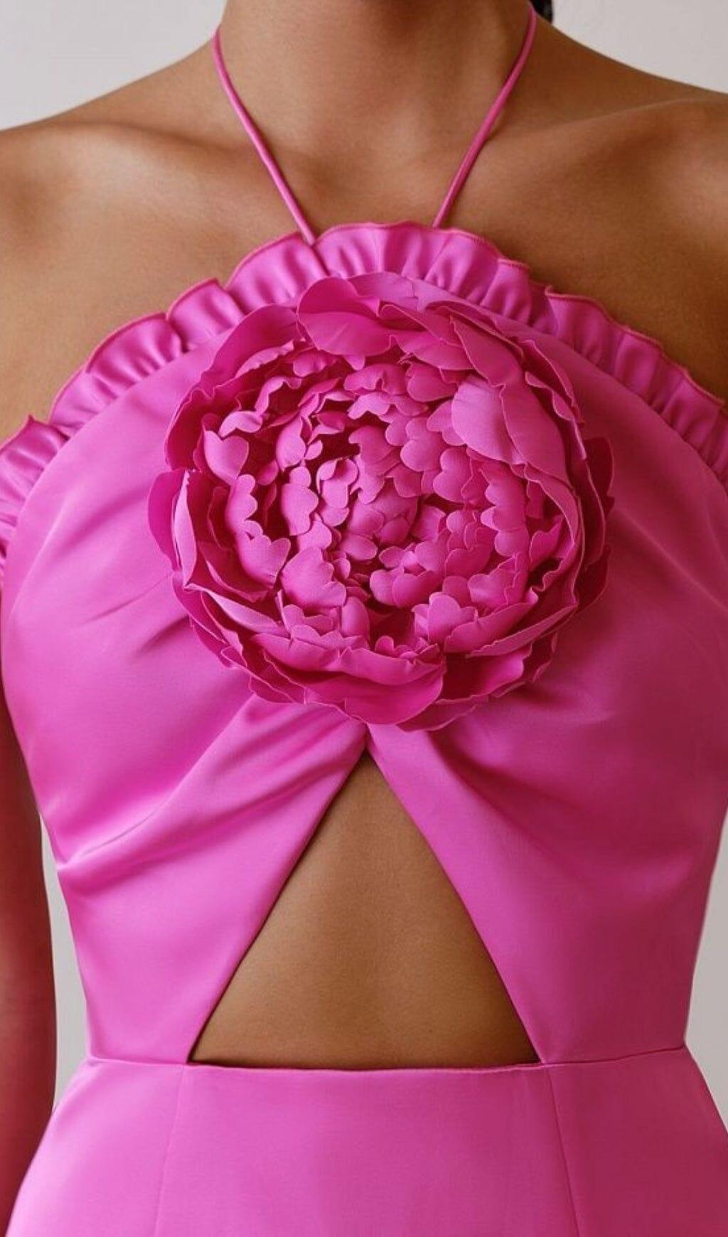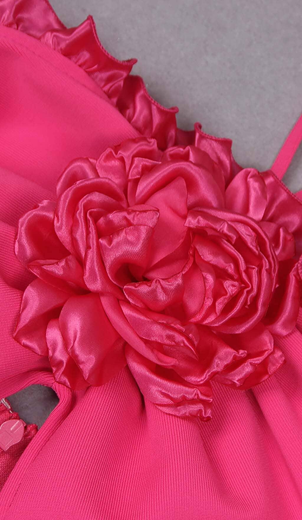 FLORAL EMBELLISHED SLIT MIDI DRESS IN PINK