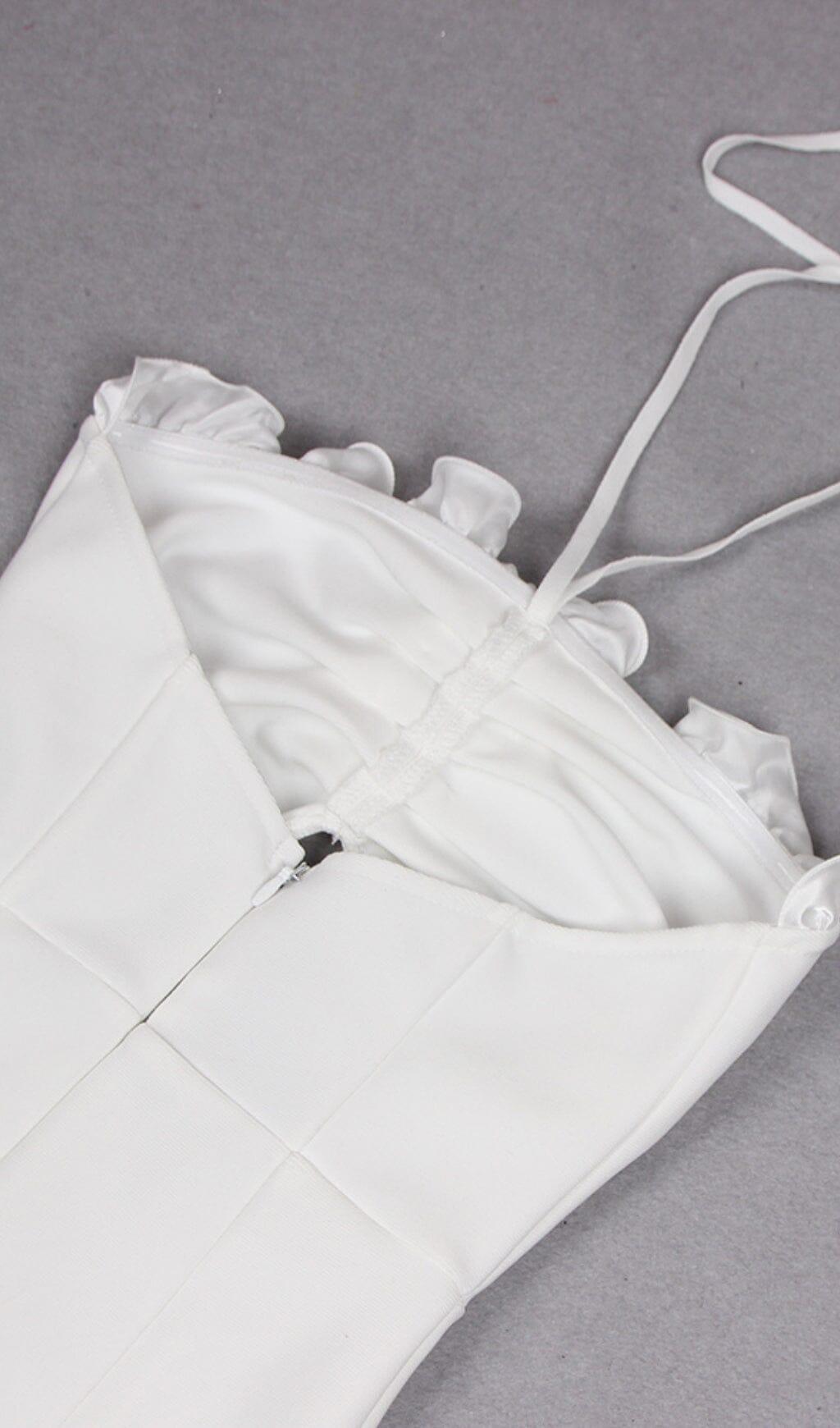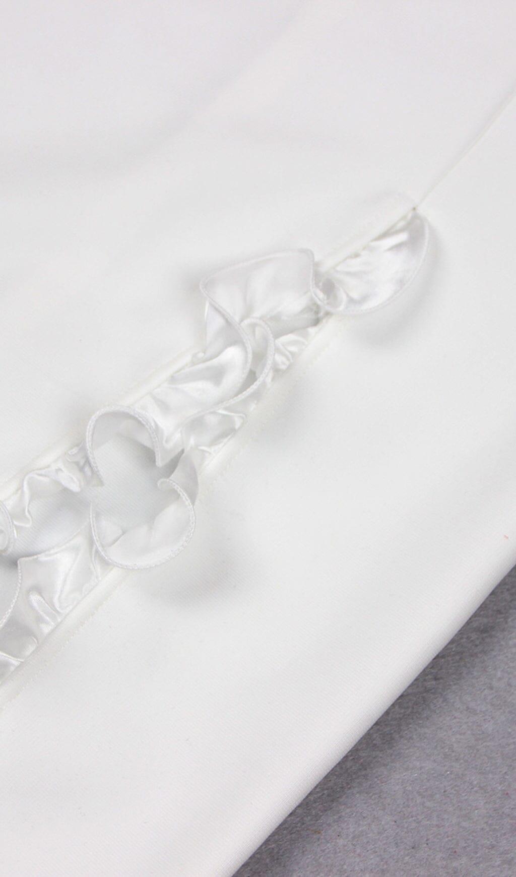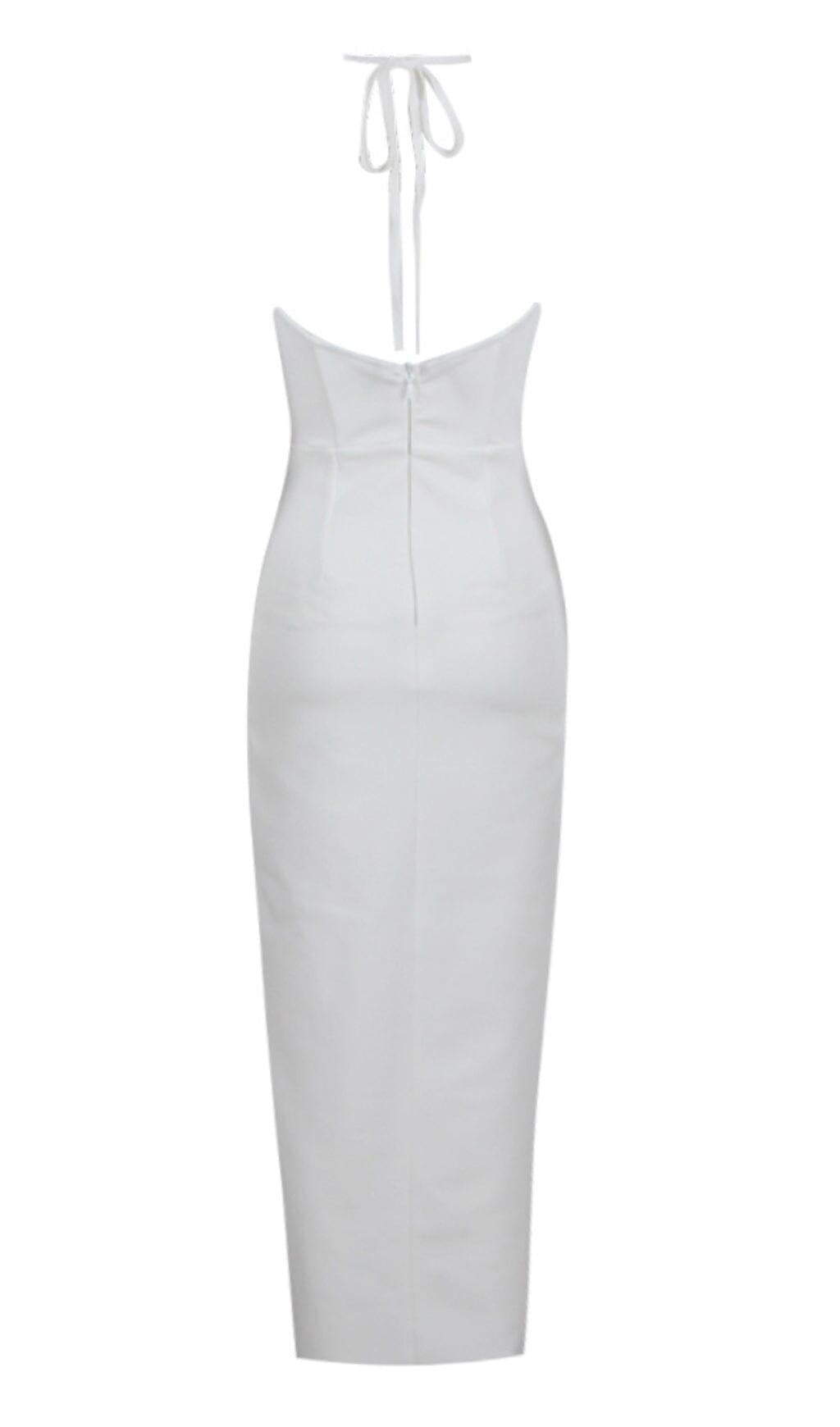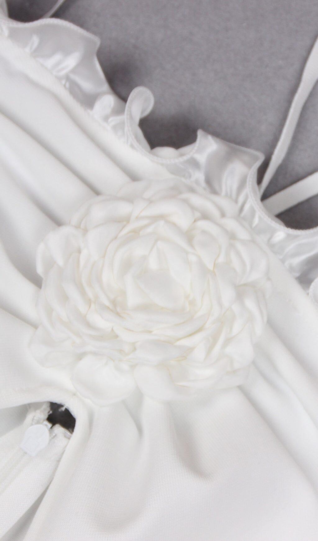 FLORAL EMBELLISHED SLIT MIDI DRESS IN WHITE