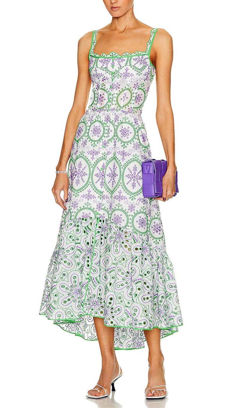 FLORAL EYELET EMBROIDERED MAXI DRESS IN ROSE PETALS