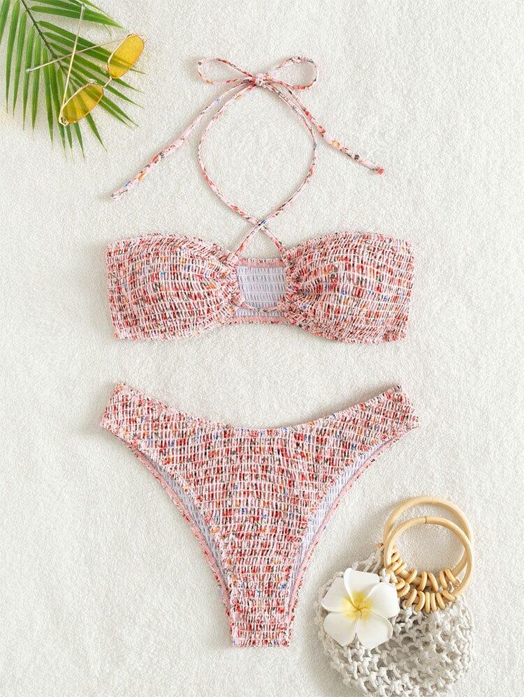 Bring a pop of color to the beach with this Floral Halter Bikini Suit. The vibrant floral print is sure to catch everyone's eye, while the halter neckline provides a comfortable and supportive fit. The bikini top features a plunging V-neckline and removable padding for customizable coverage, and the matching bikini bottom offers a cheeky fit with adjustable side ties for a perfect fit. Made with soft and stretchy material, this bikini suit is perfect for lounging by the pool or taking a dip in the ocean. Make a statement this summer with the Floral Halter Bikini Suit.