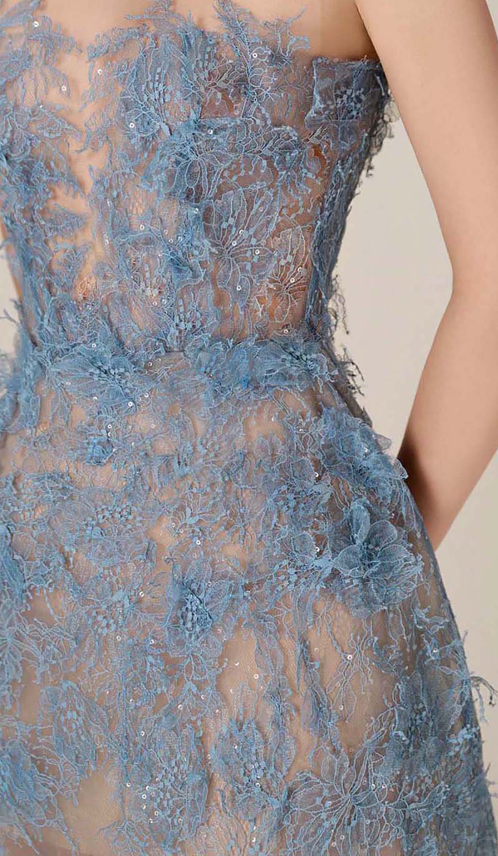 ALLYSON BLUE FLORAL LACE EMBROIDER MIDI DRESS