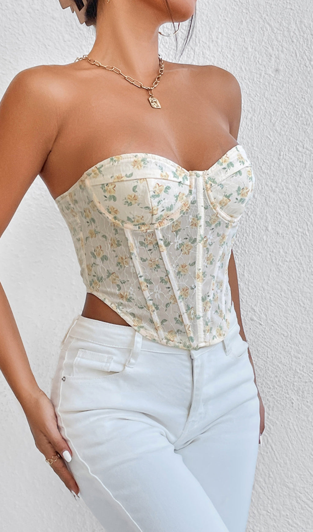 FLORAL MESH CORSET TOP