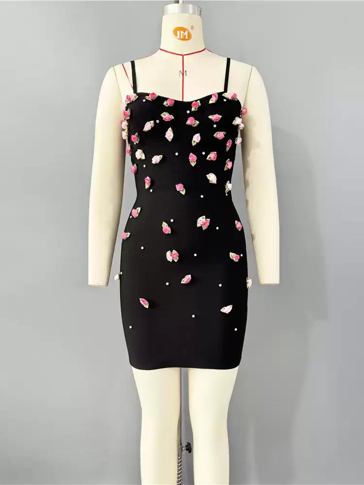 Floral Pearl MINI Dress Black