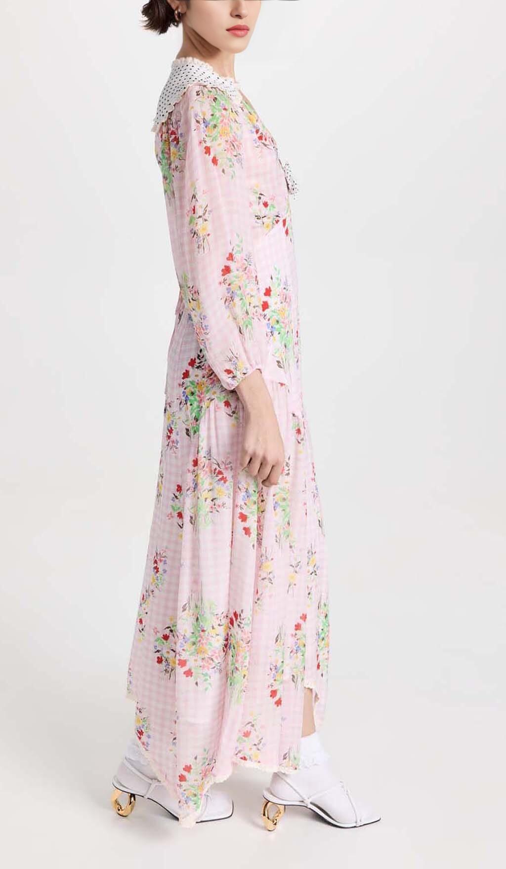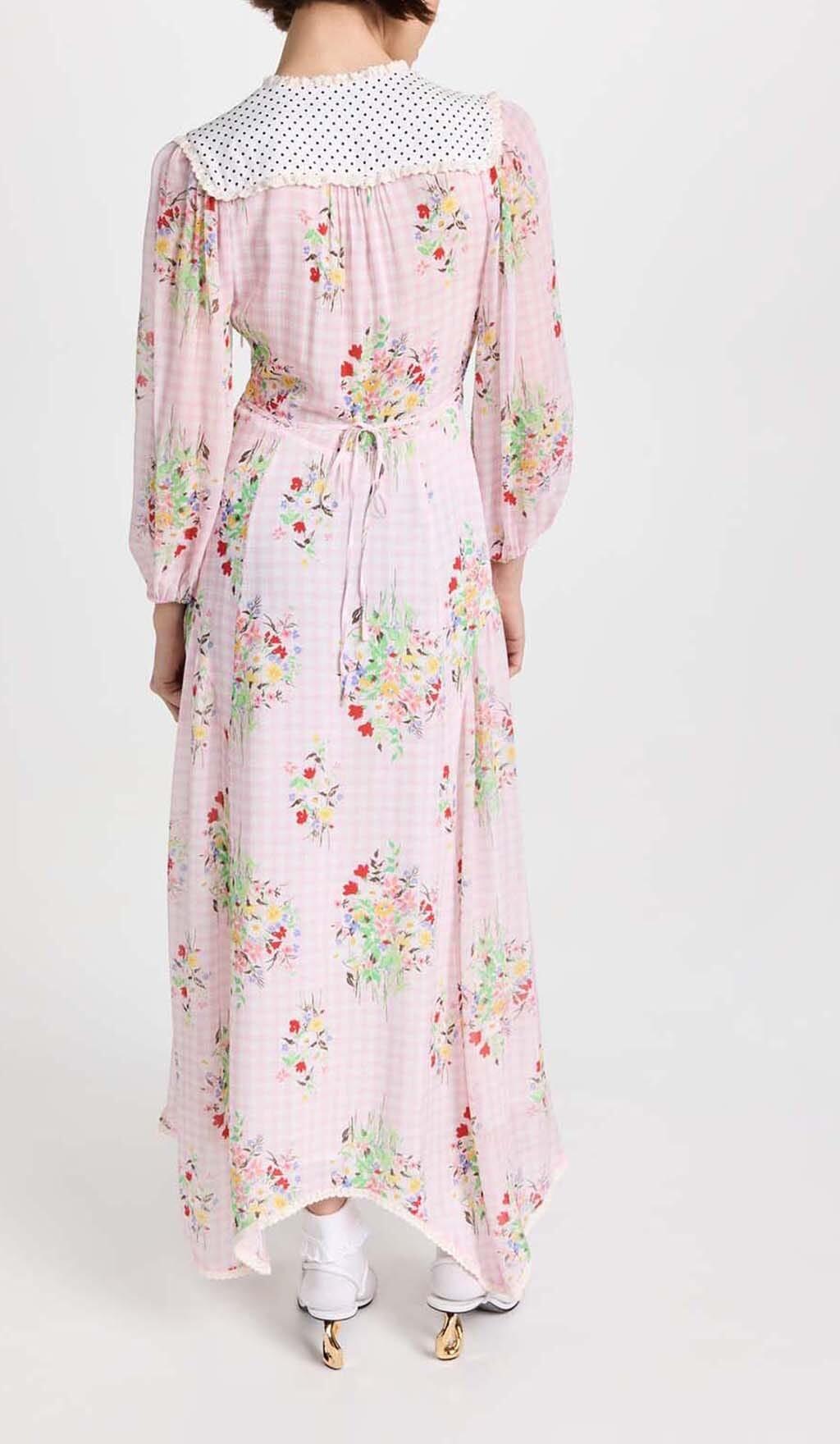 Introducing our stunning Floral Print Midi Dress in a beautiful peachy pink color. This dress is designed to make you feel feminine and fabulous, with its blooming floral print that brings the vibrancy of an English garden to life.