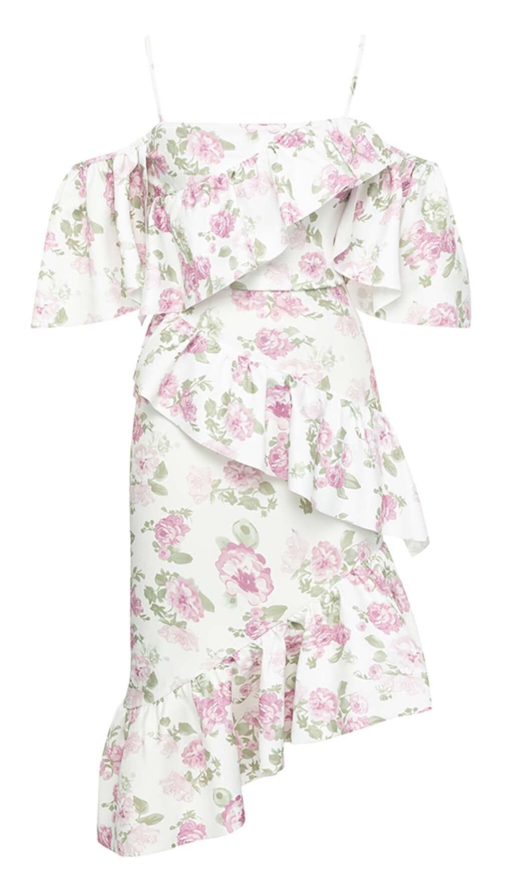 This delightful white dress is the perfect addition to your summer wardrobe. With its floral-print ruffle bandeau top and midi skirt, it exudes a feminine and playful vibe. The comfortable fabric ensures that you can wear it all day or night without any discomfort.