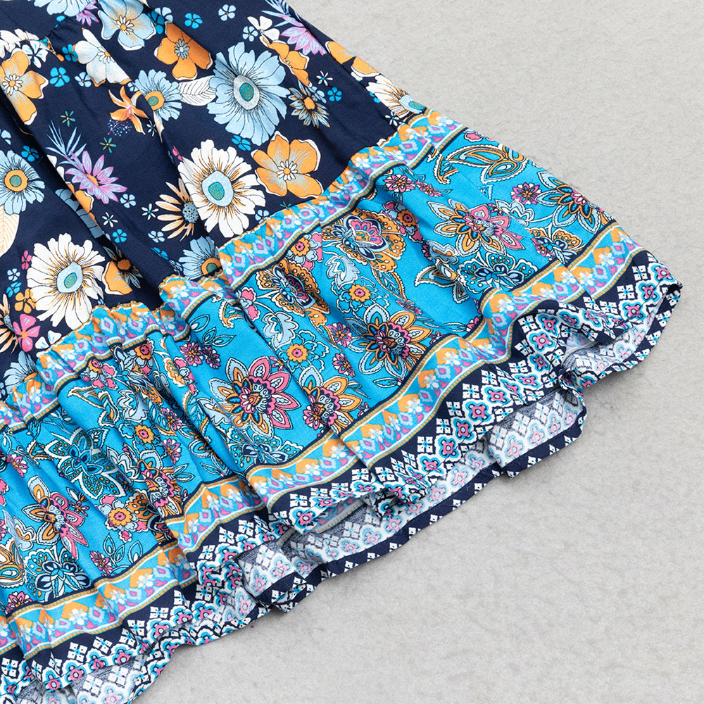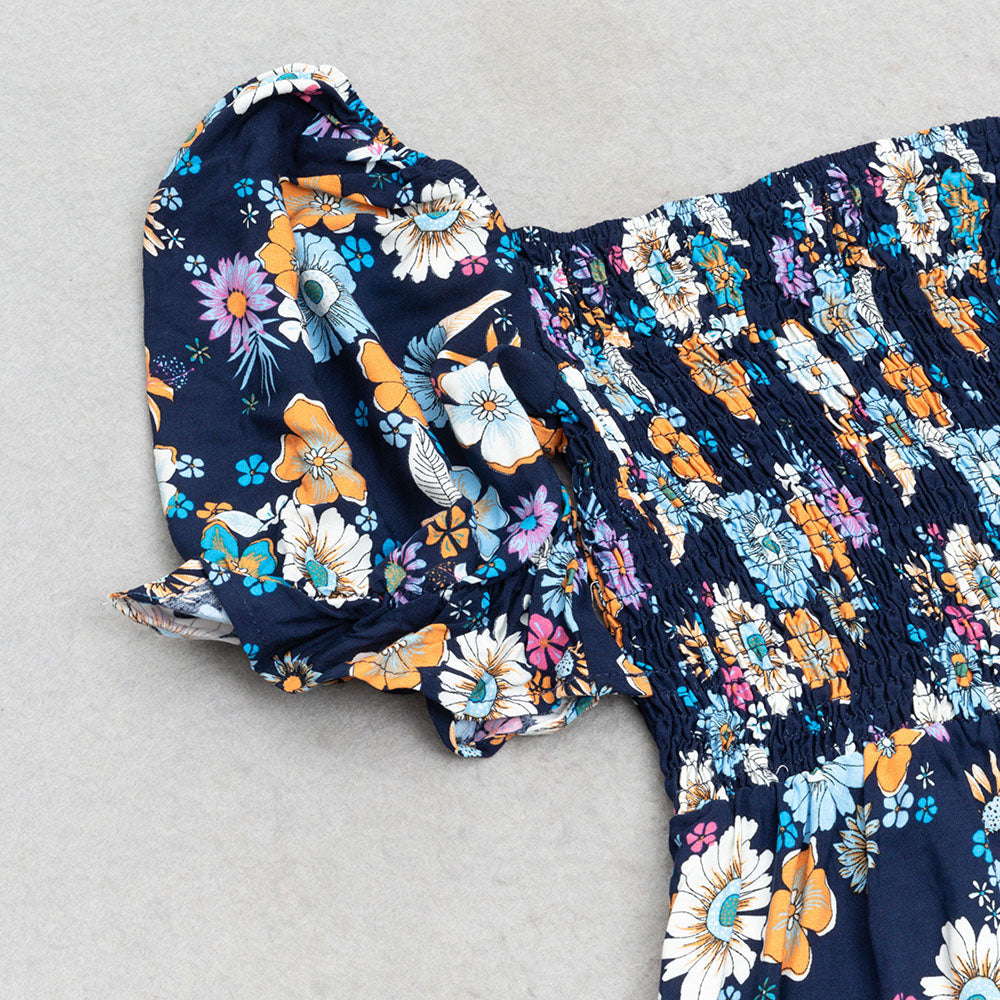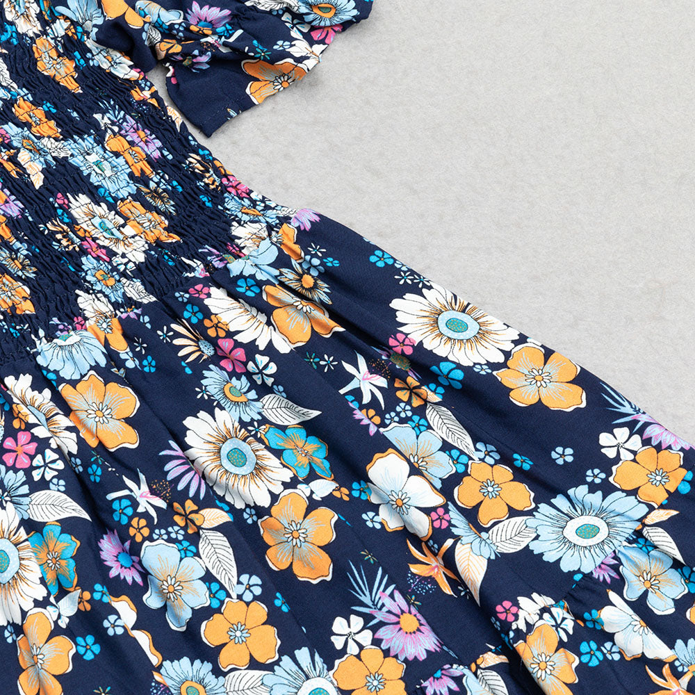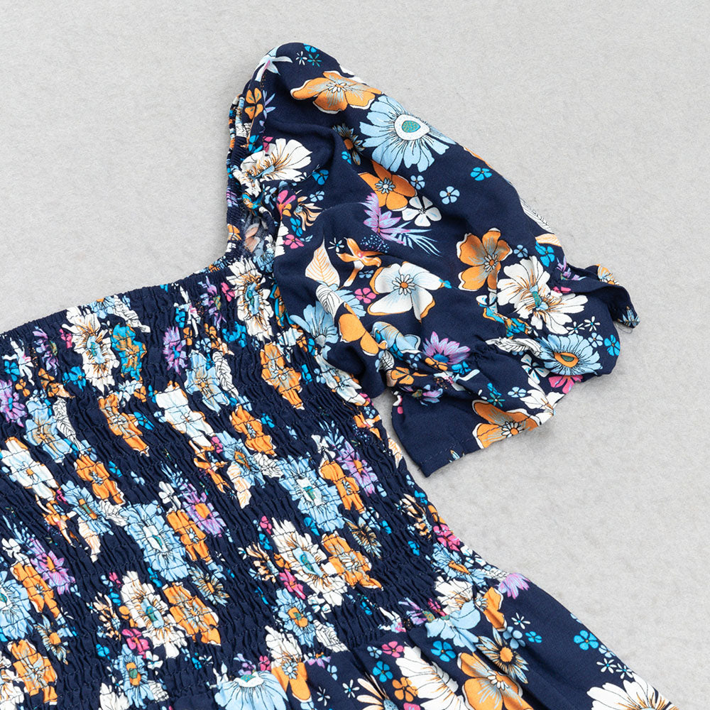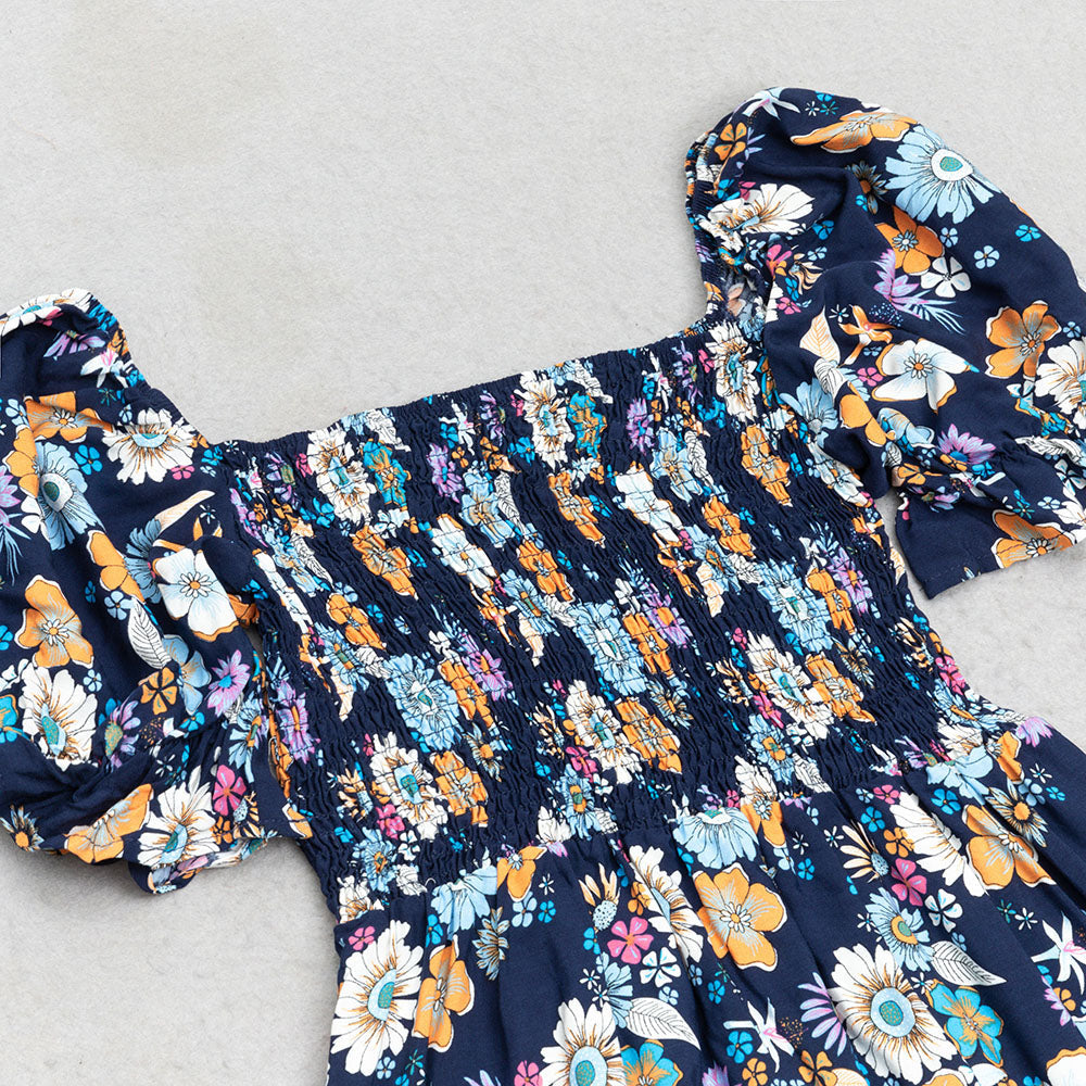 FLORAL PRINT RUFFLE PUFF SLEEVE DRESS
