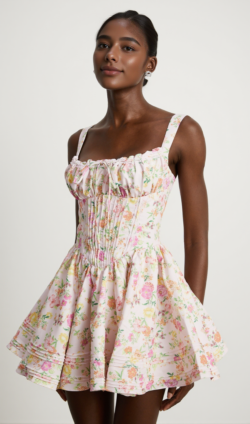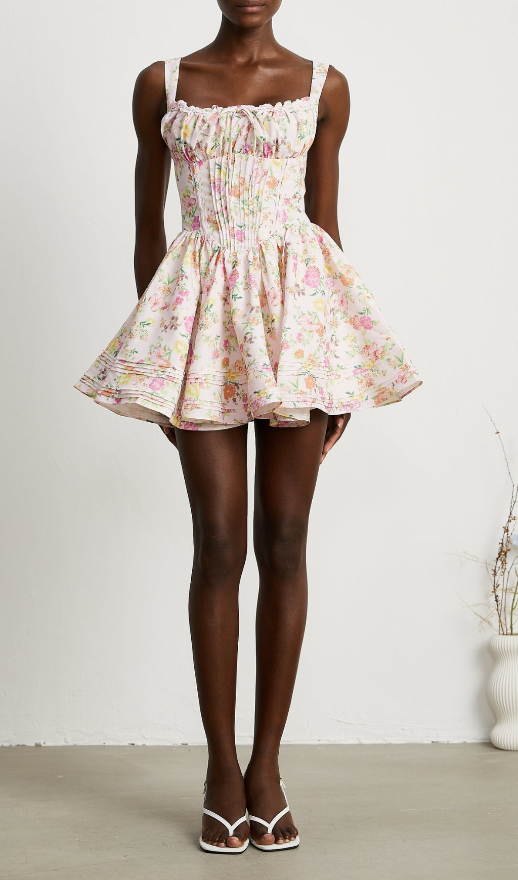 FLORAL PRINTED COTTON MINI DRESS