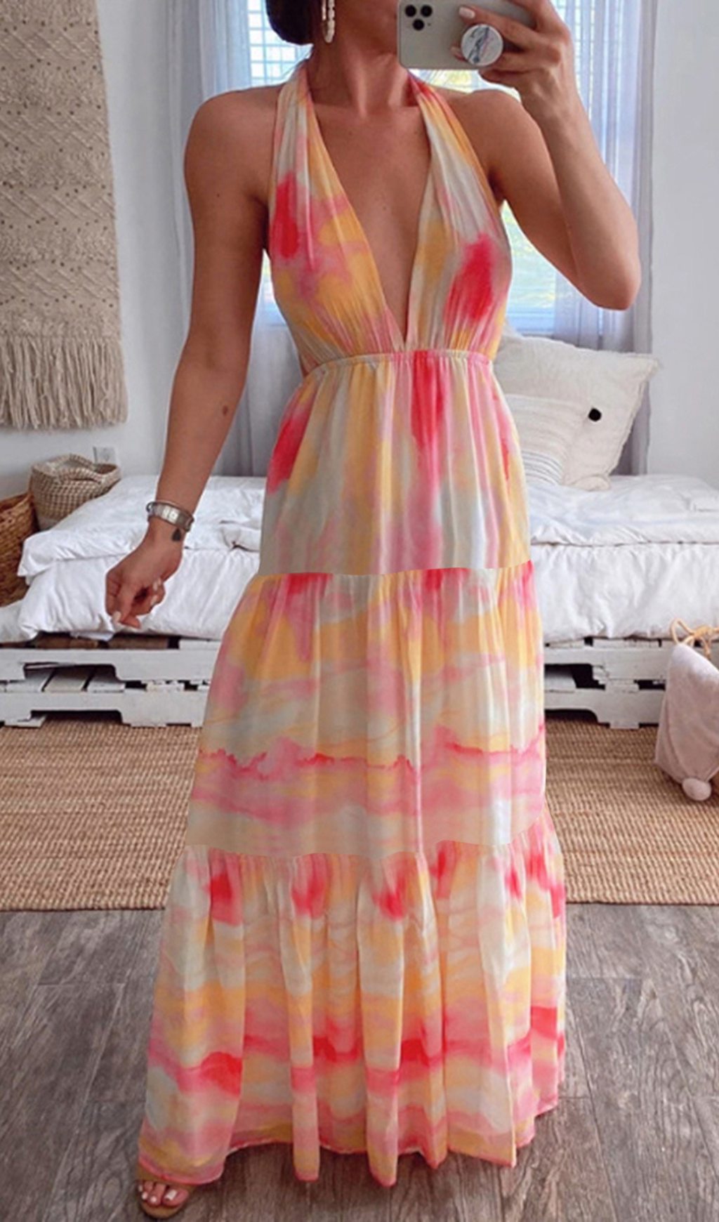 FLORAL PRINTED TIE TOP MAXI DRESS