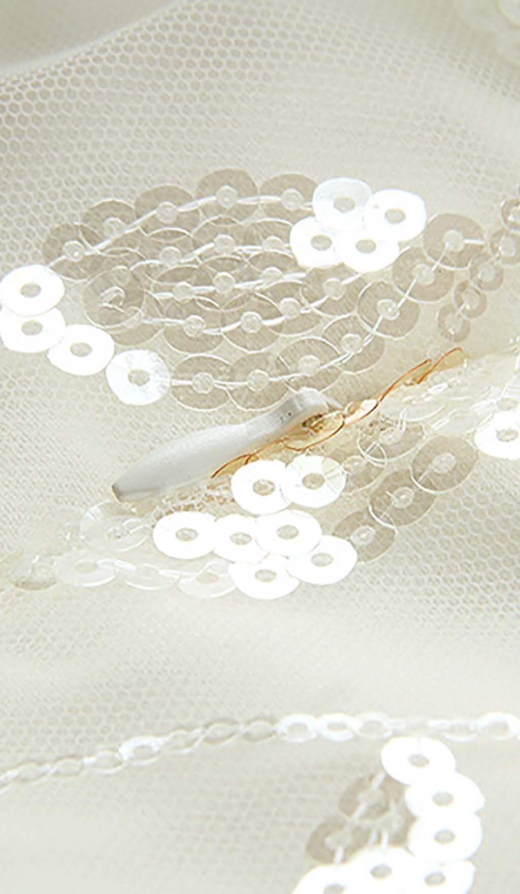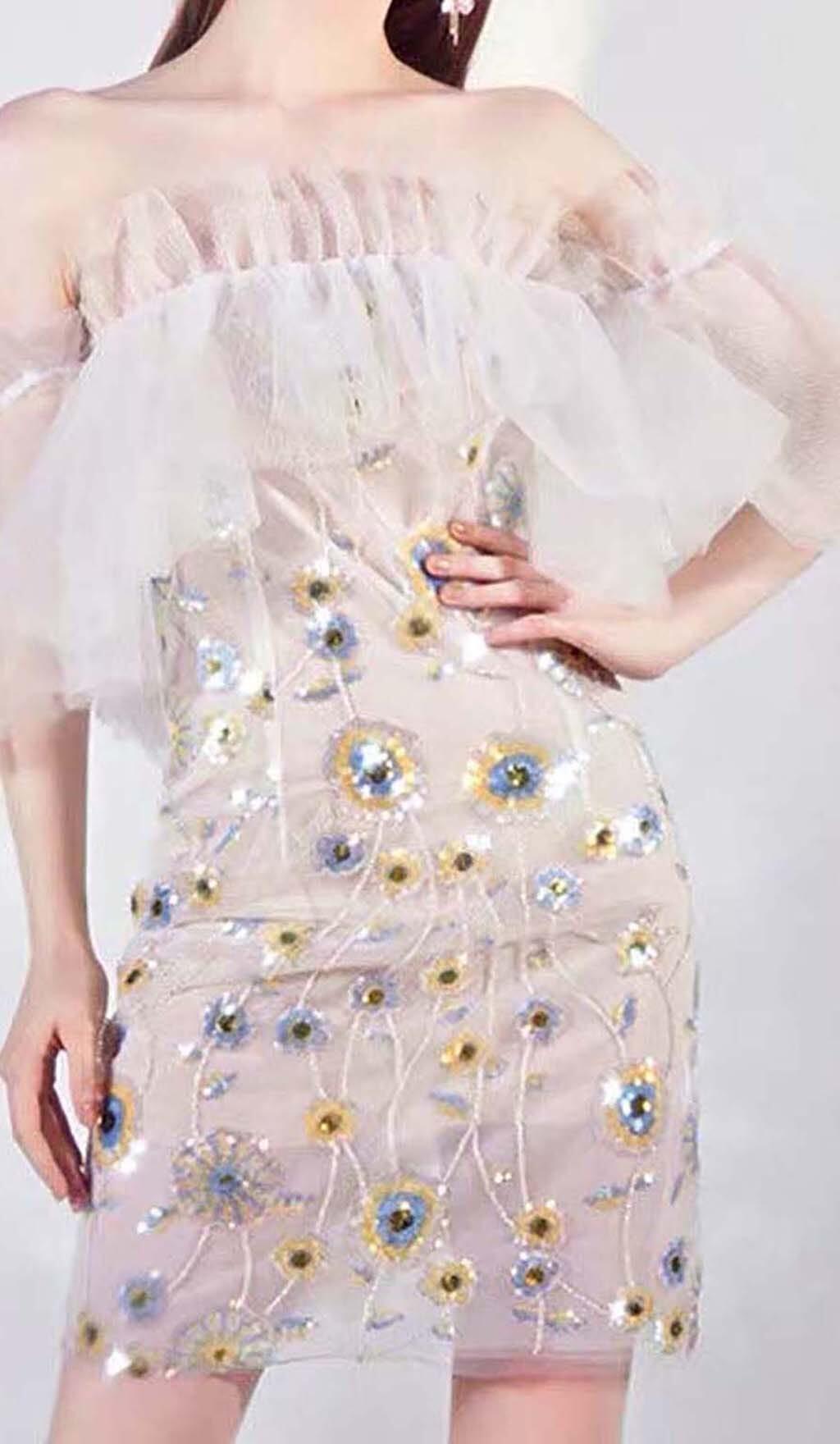FLORAL SEQUINED MINI DRESS IN WHITE