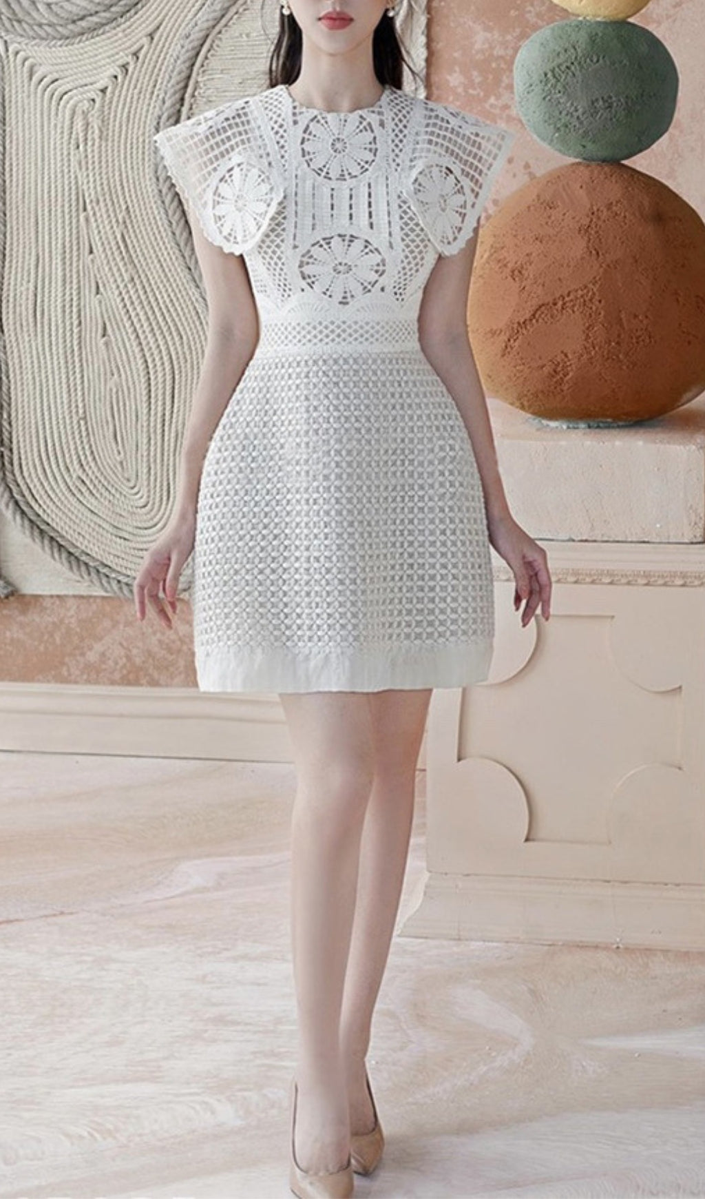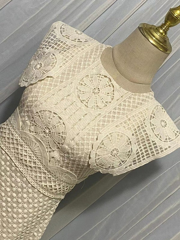 The delicate lace detailing and mini length create a feminine and elegant look. Made with high-quality materials, it offers both comfort and durability. Perfect for any occasion, this dress is a must-have for any fashion-forward individual.