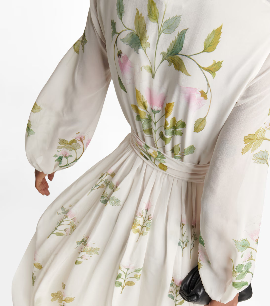 Made from premium silk georgette, this dress features a beautiful floral print that will turn heads. Its flowing maxi length creates a stunning silhouette, while the lightweight fabric ensures ultimate comfort. Elevate your wardrobe with this elegant and stylish dress.