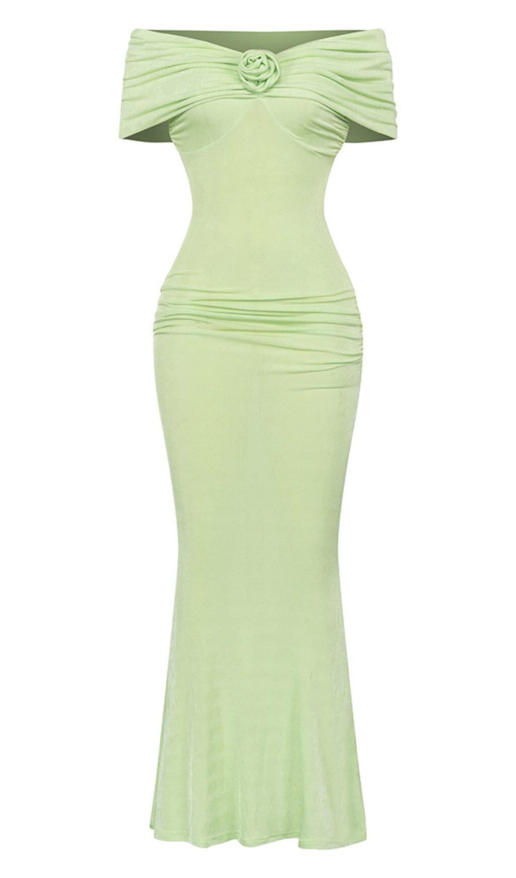 FLORAL SLEEVELESS BANGAGE MAXI DRESS IN OLIVE GREEN