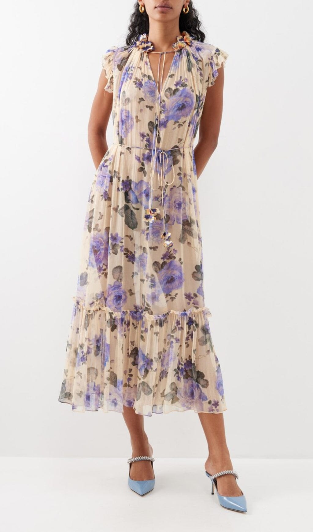 FLORAL SLEEVELESS MIDI DRESS