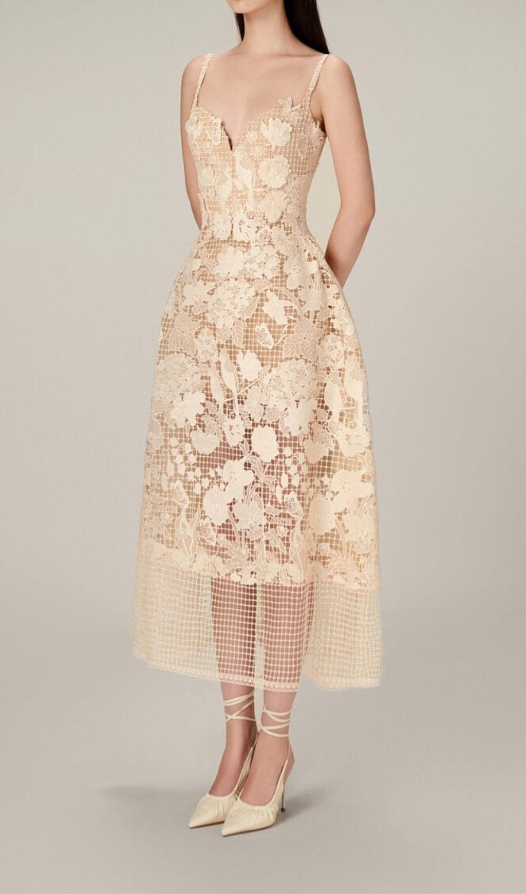 FLORAL STRAPPY MIDI DRESS IN WOODEN