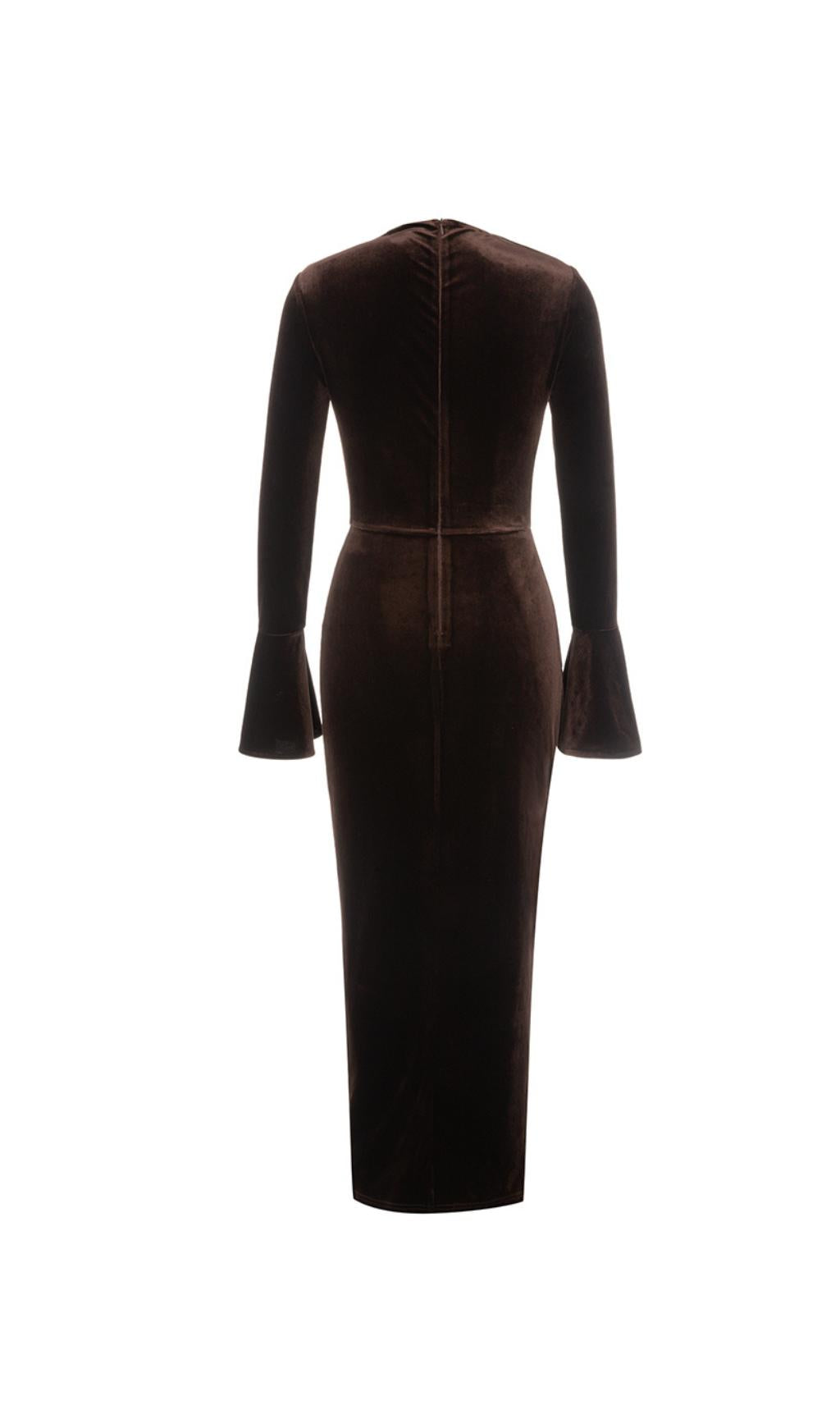 FLOUNCE SLEEVE SPLIT THIGH VELVET DRESS