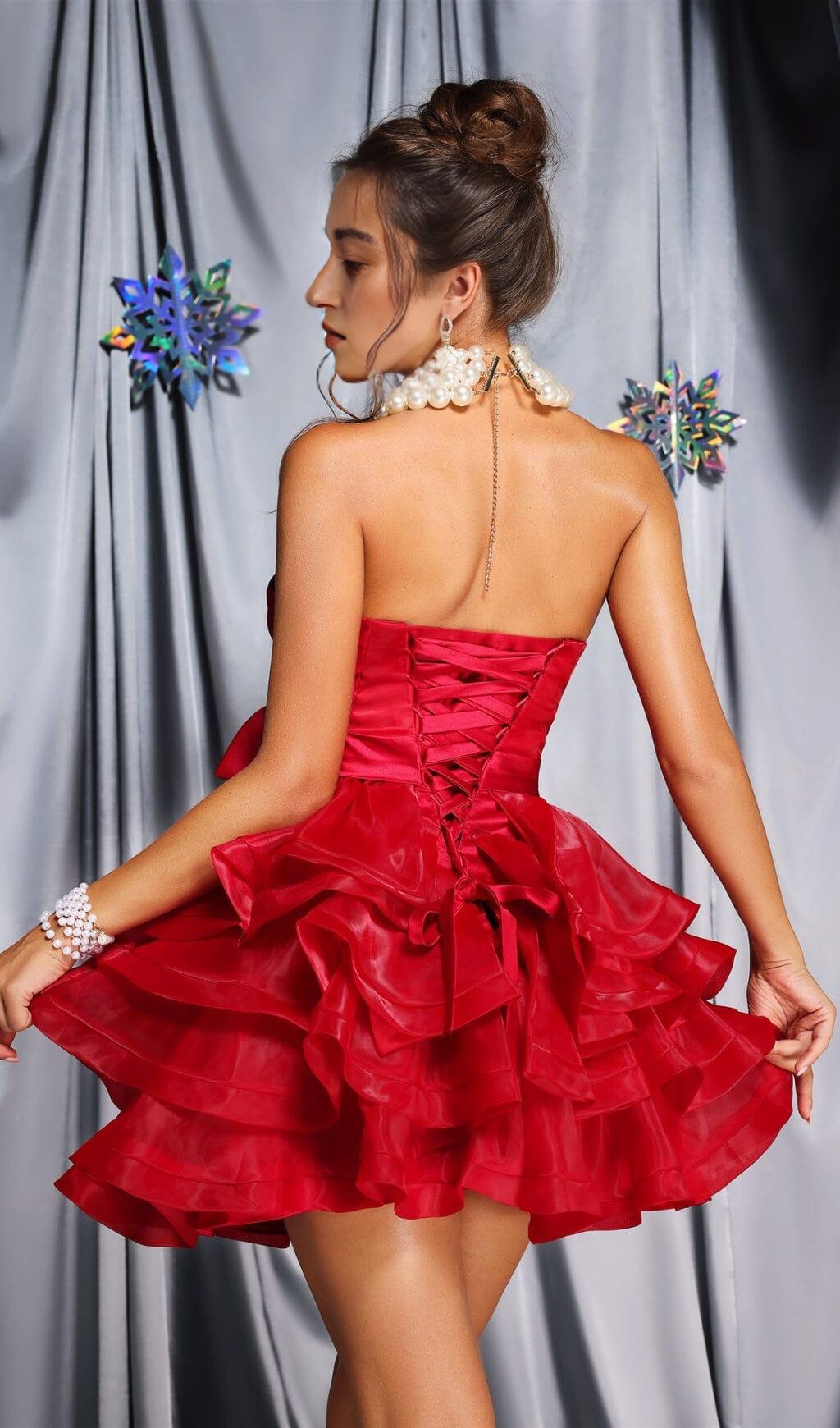 Flounced Mini Dress In Red