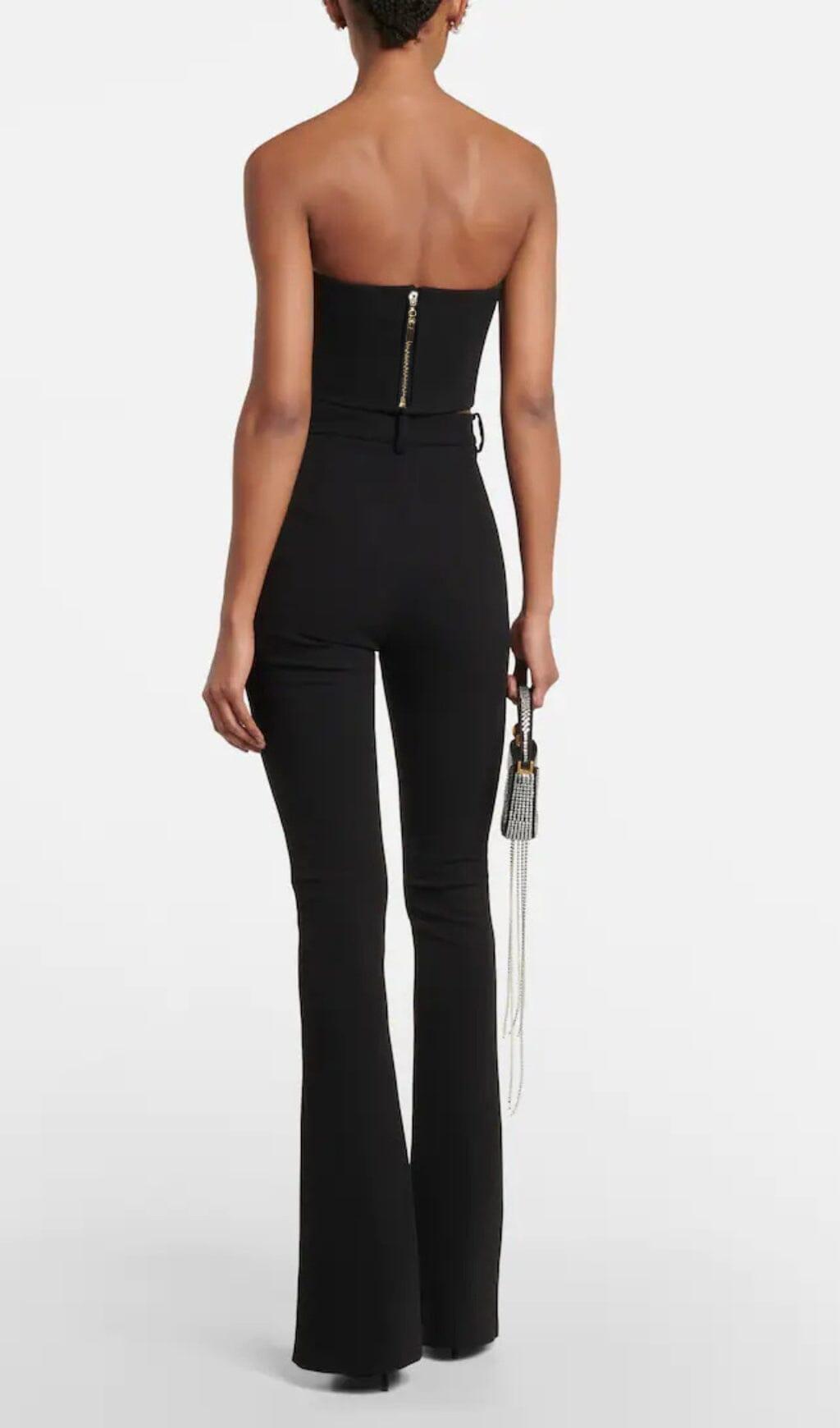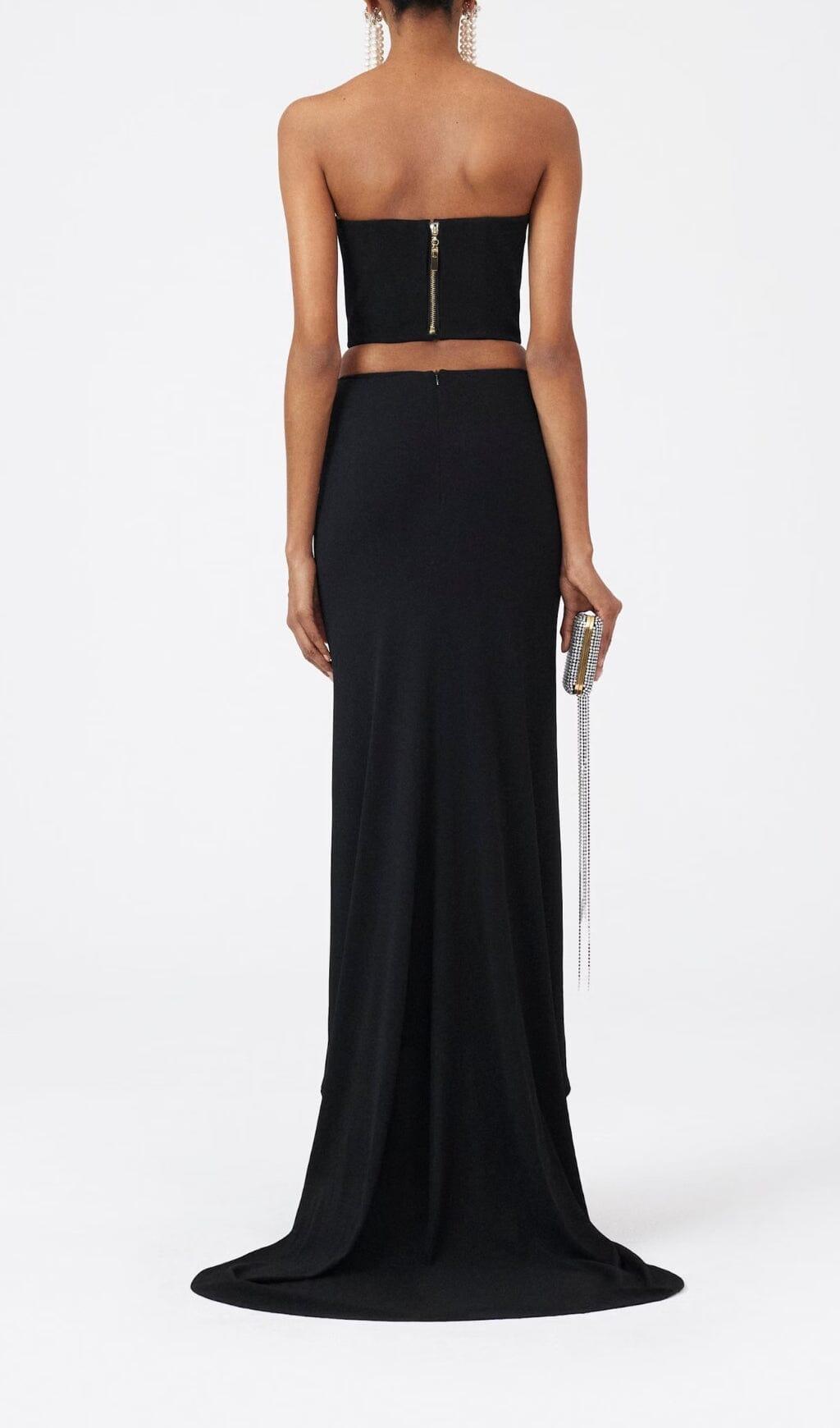 FLOWER APPLIQUE BUSTIER-STYLE TOP IN BLACK