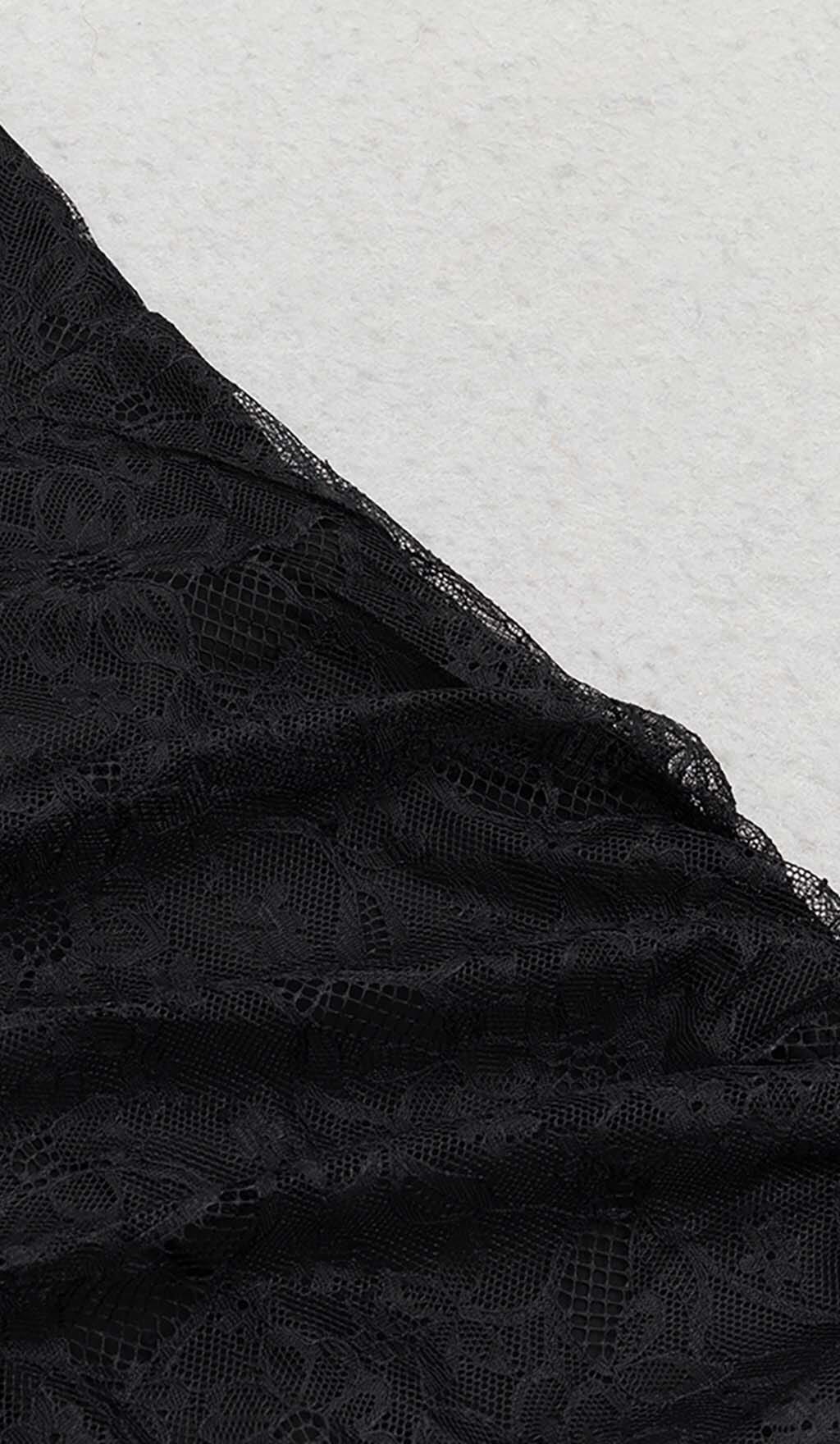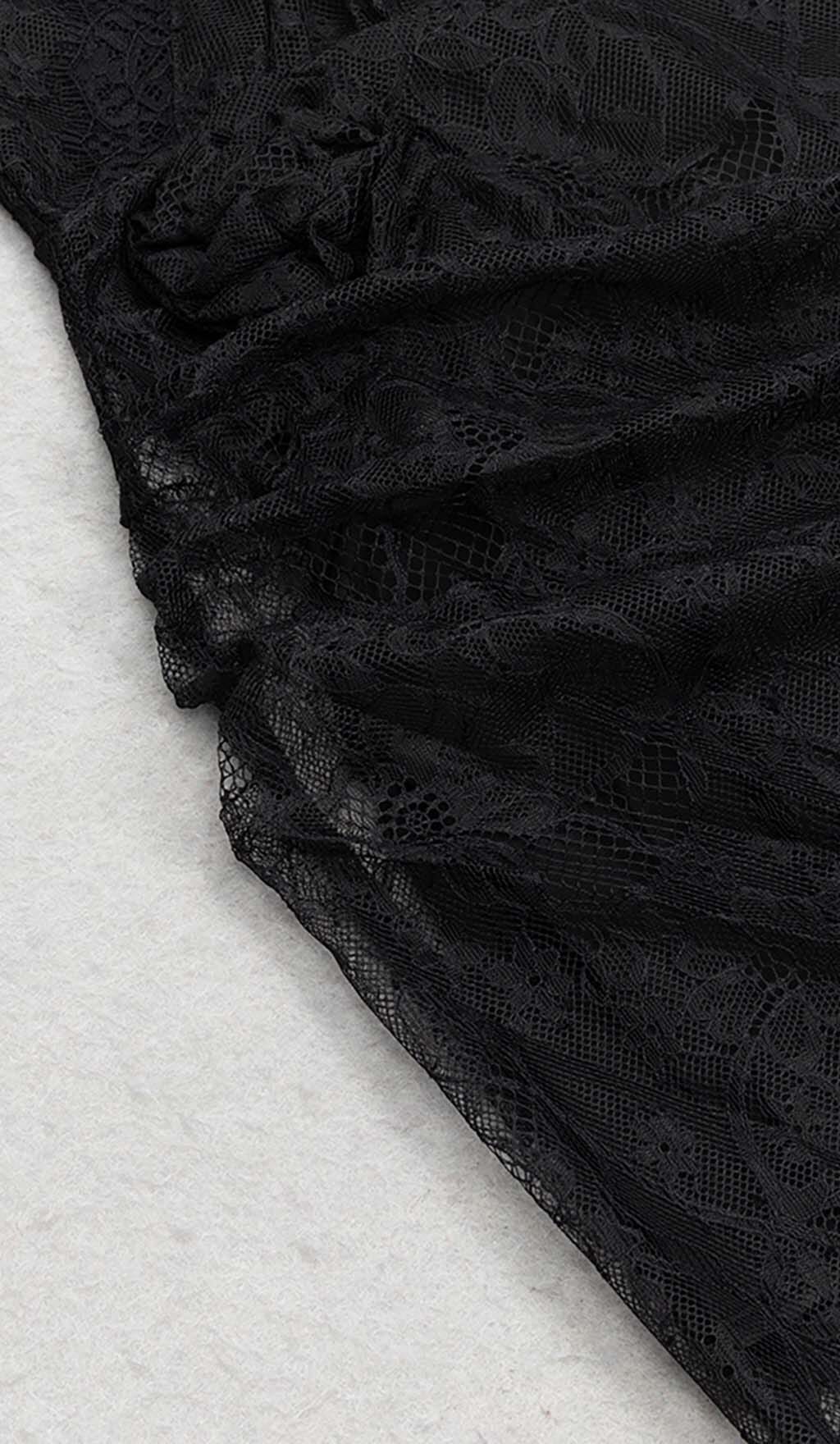 APPLIQUE LACE MIDI DRESS IN BLACK