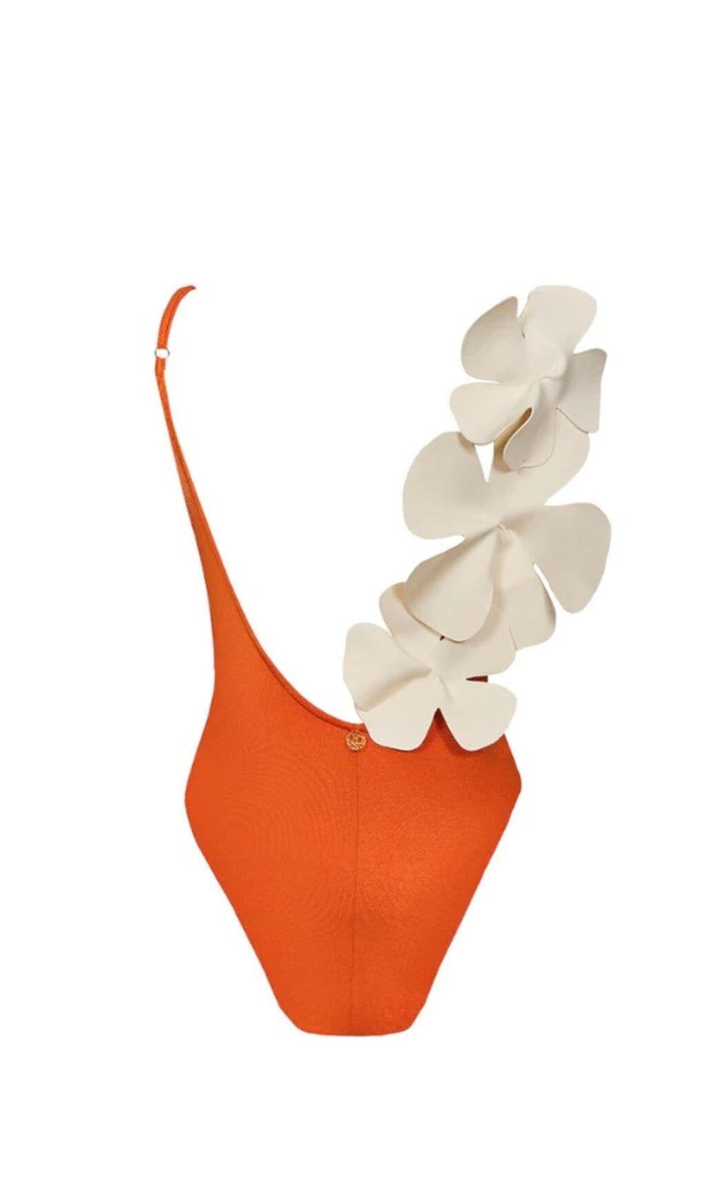 FLOWER DECOR BACKLESS ONE PIECE SWIMSUIT IN ORANGE