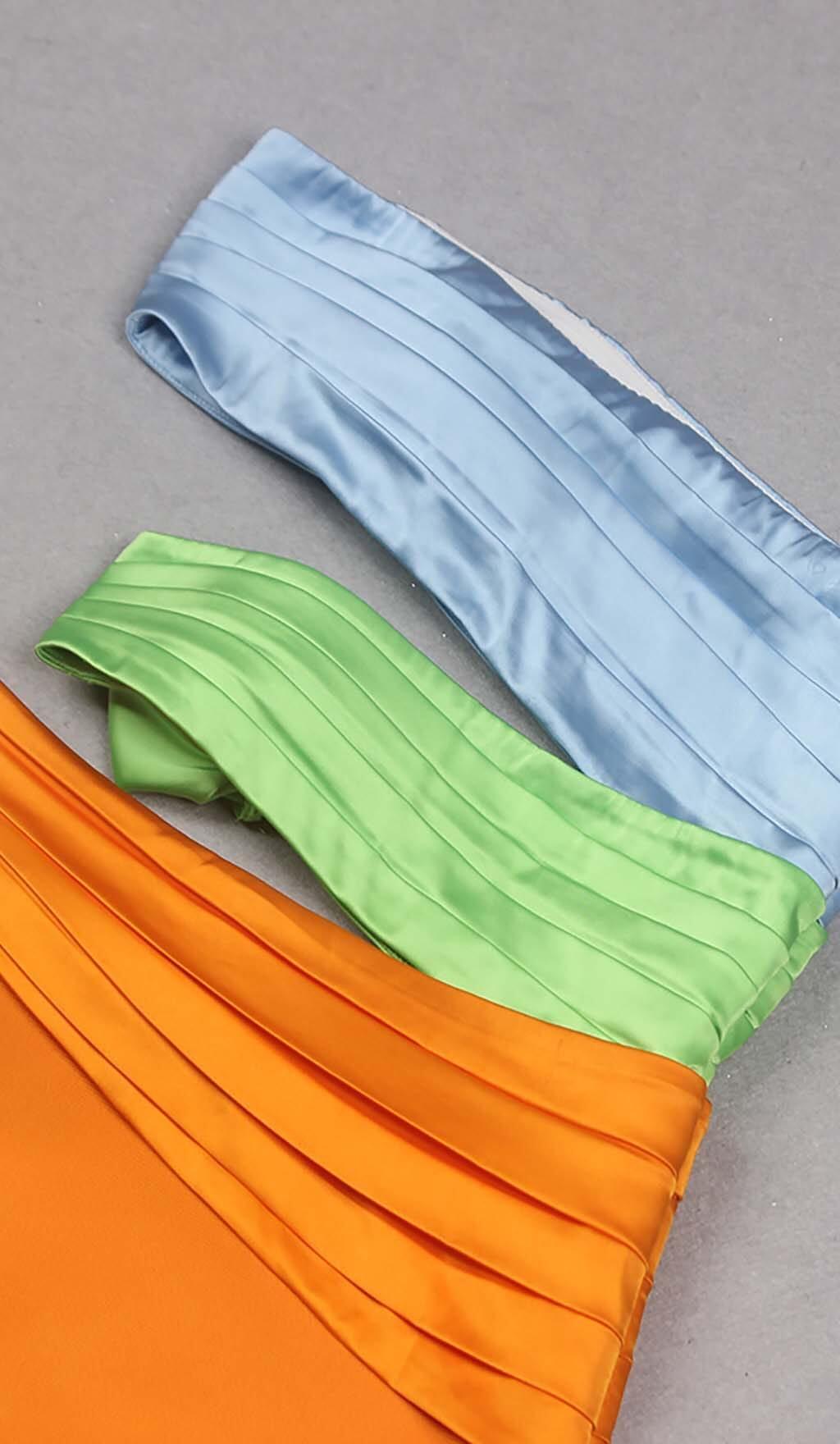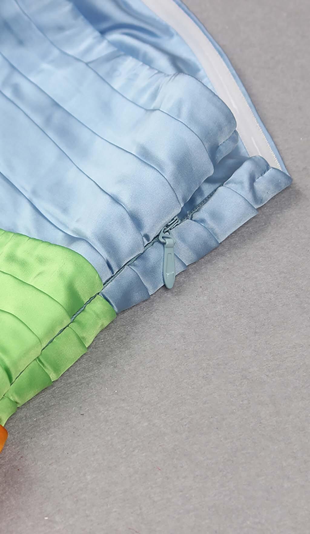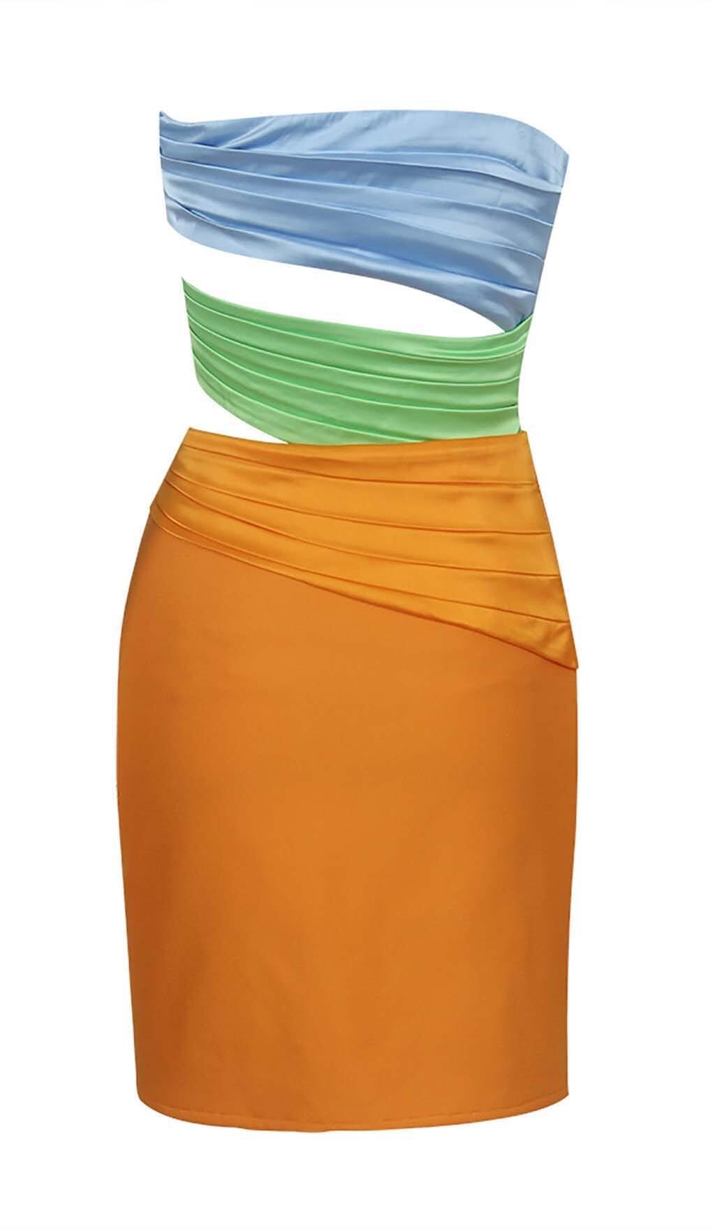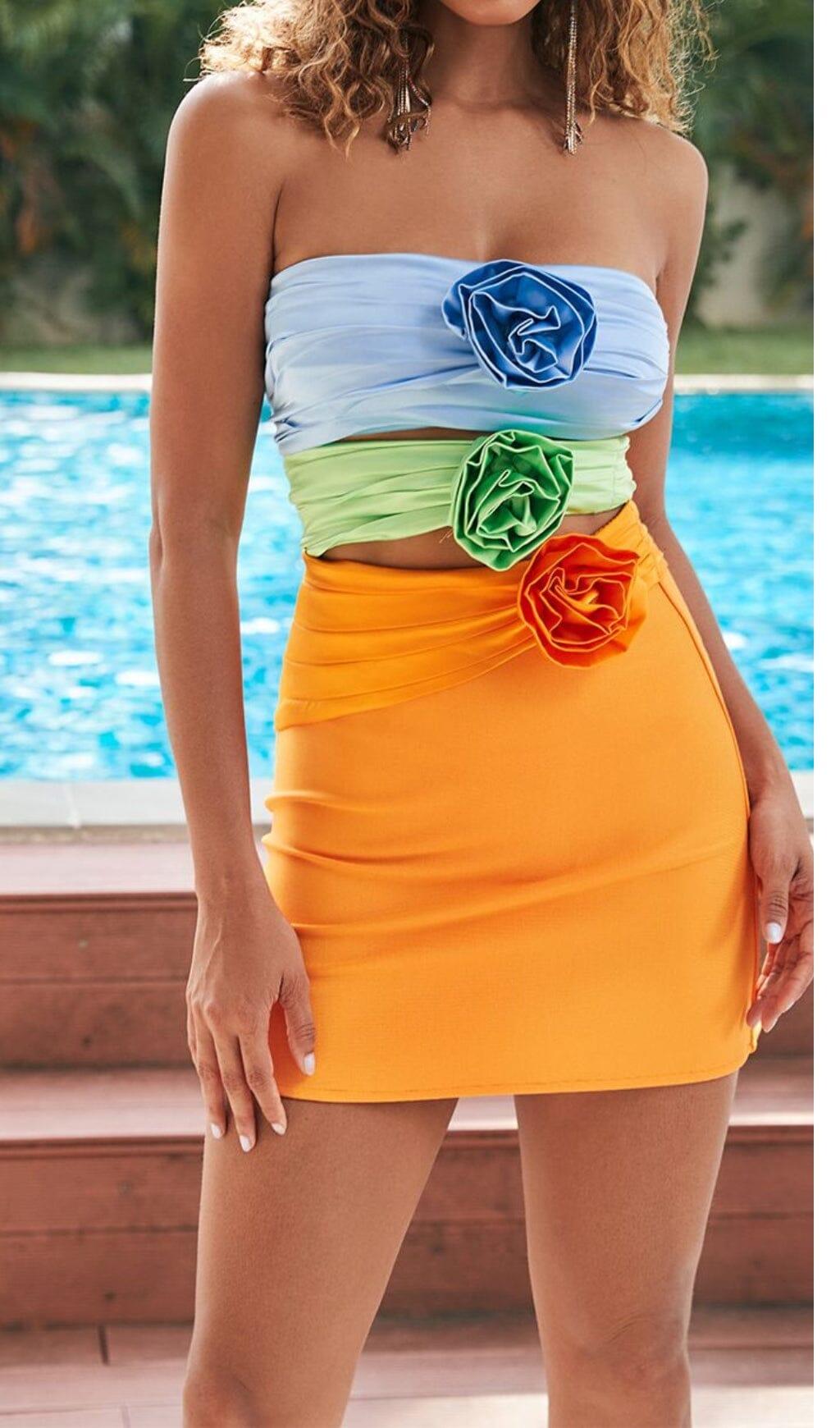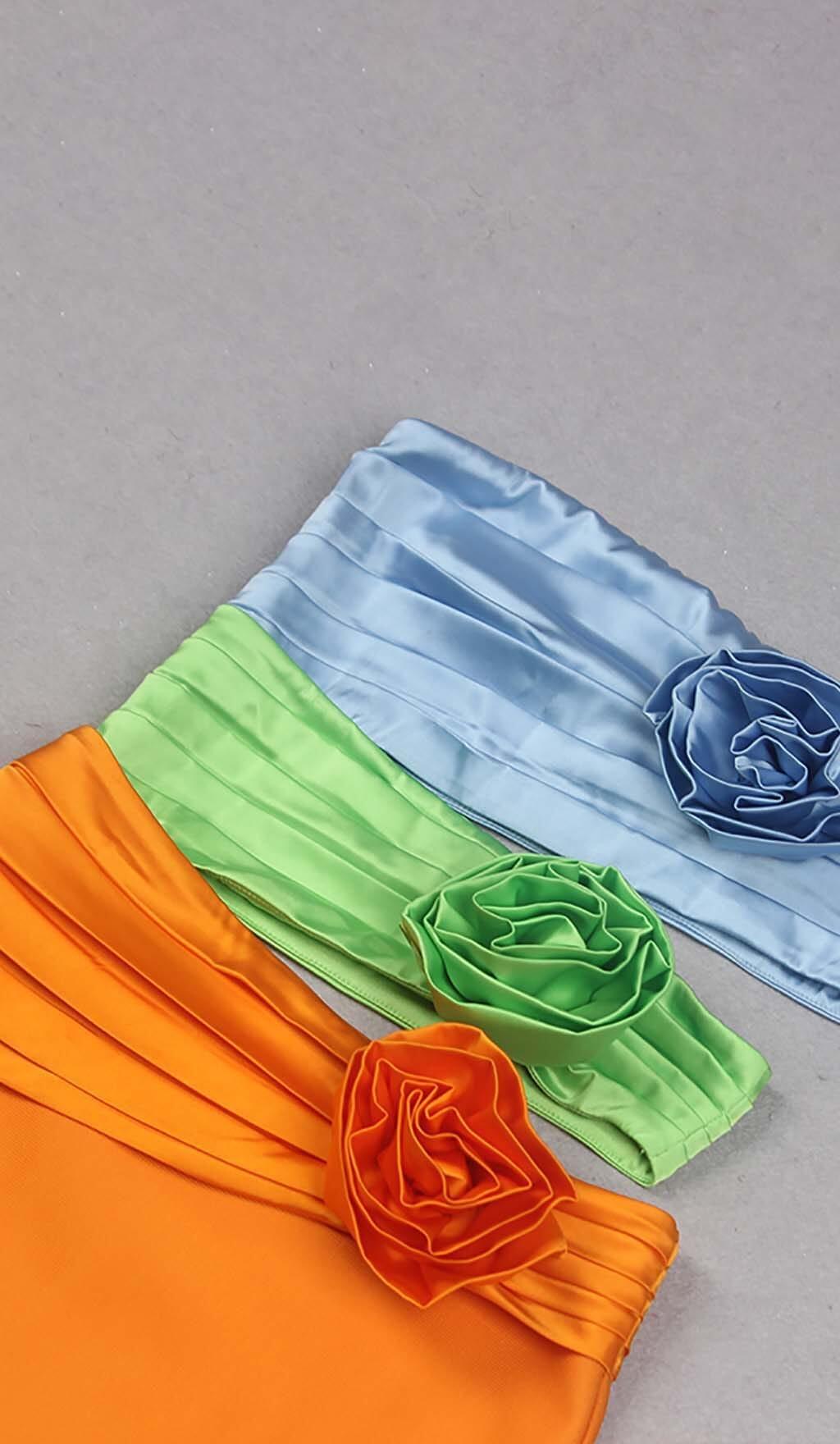 FLOWER-DETAILED SILK MINI DRESS IN MULTI
