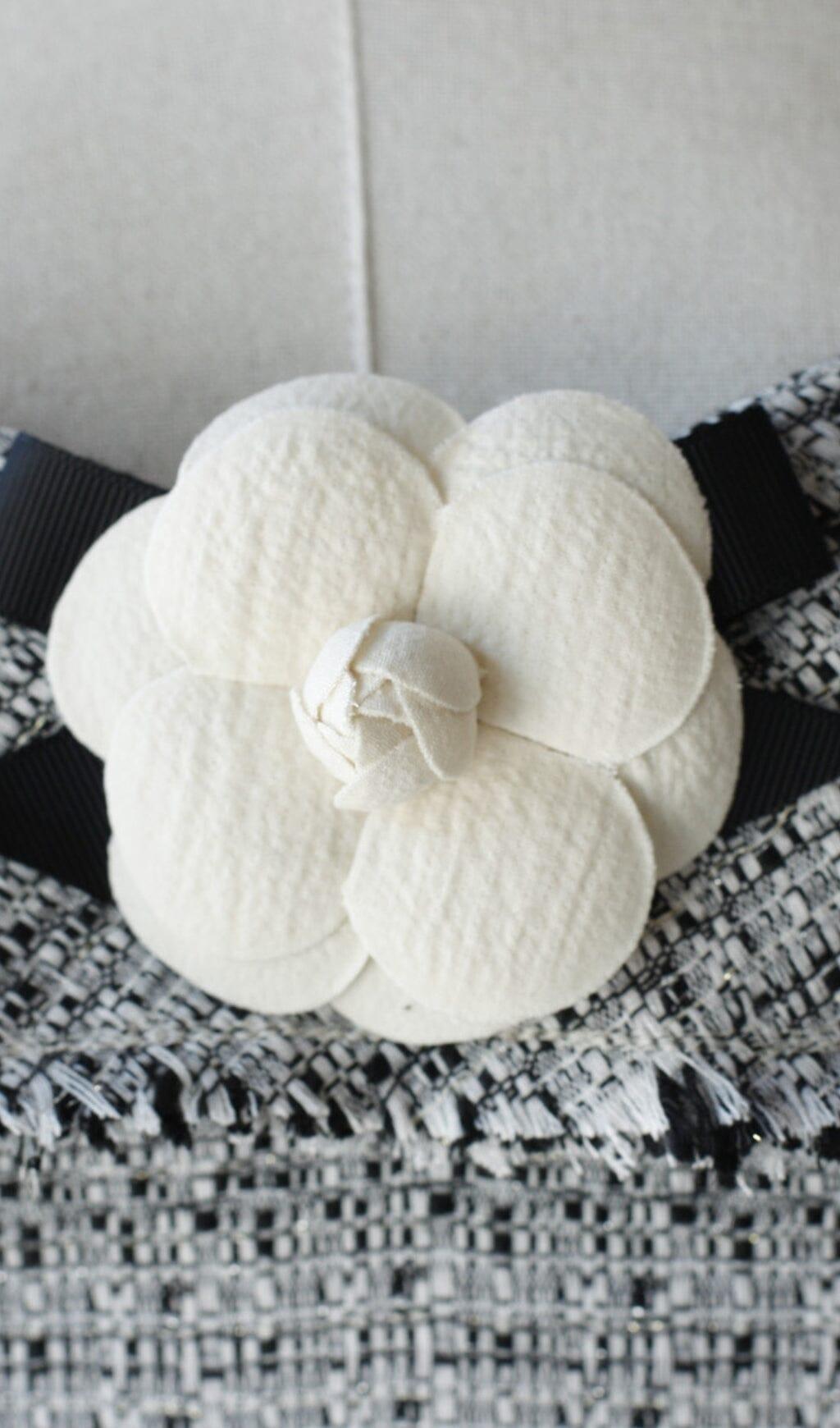 • Gray fabric adorned with brightly-colored flowers for a playful and feminine feel