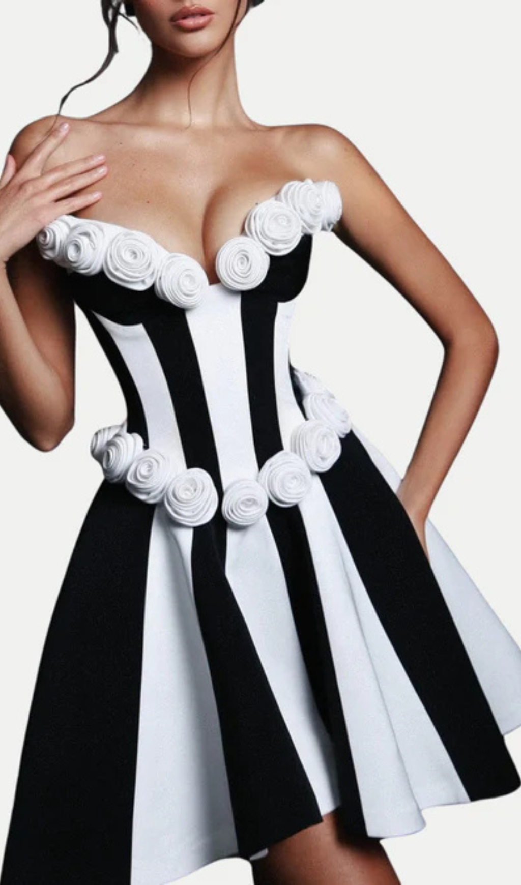 Made with expert craftsmanship, this dress features delicate floral detailing and a trendy two-tone design. Perfect for any occasion, it will make you stand out with its stylish and unique look. Elevate your fashion game today.