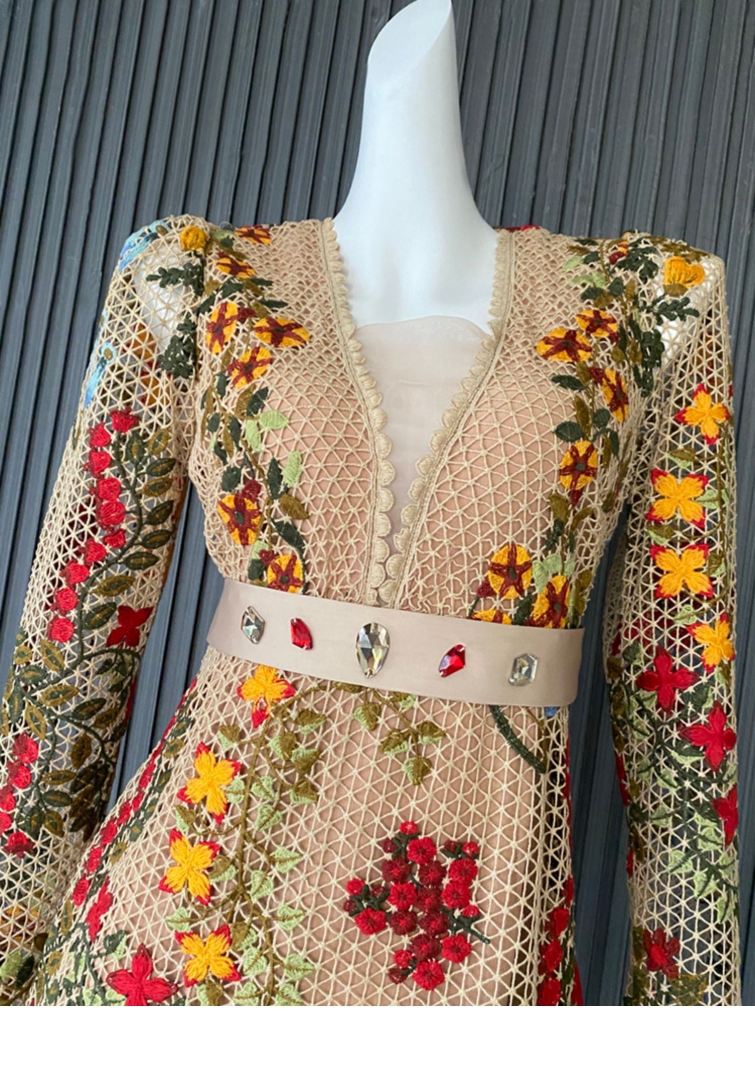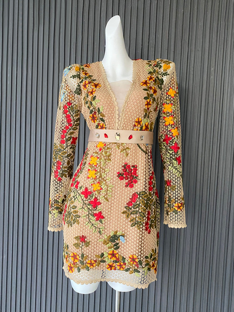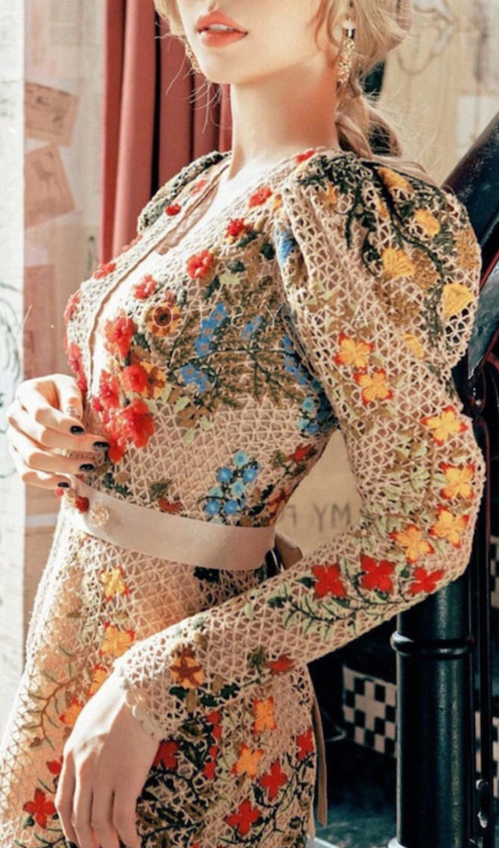 ARMINA FLOWER EMBROIDERY MINI DRESS