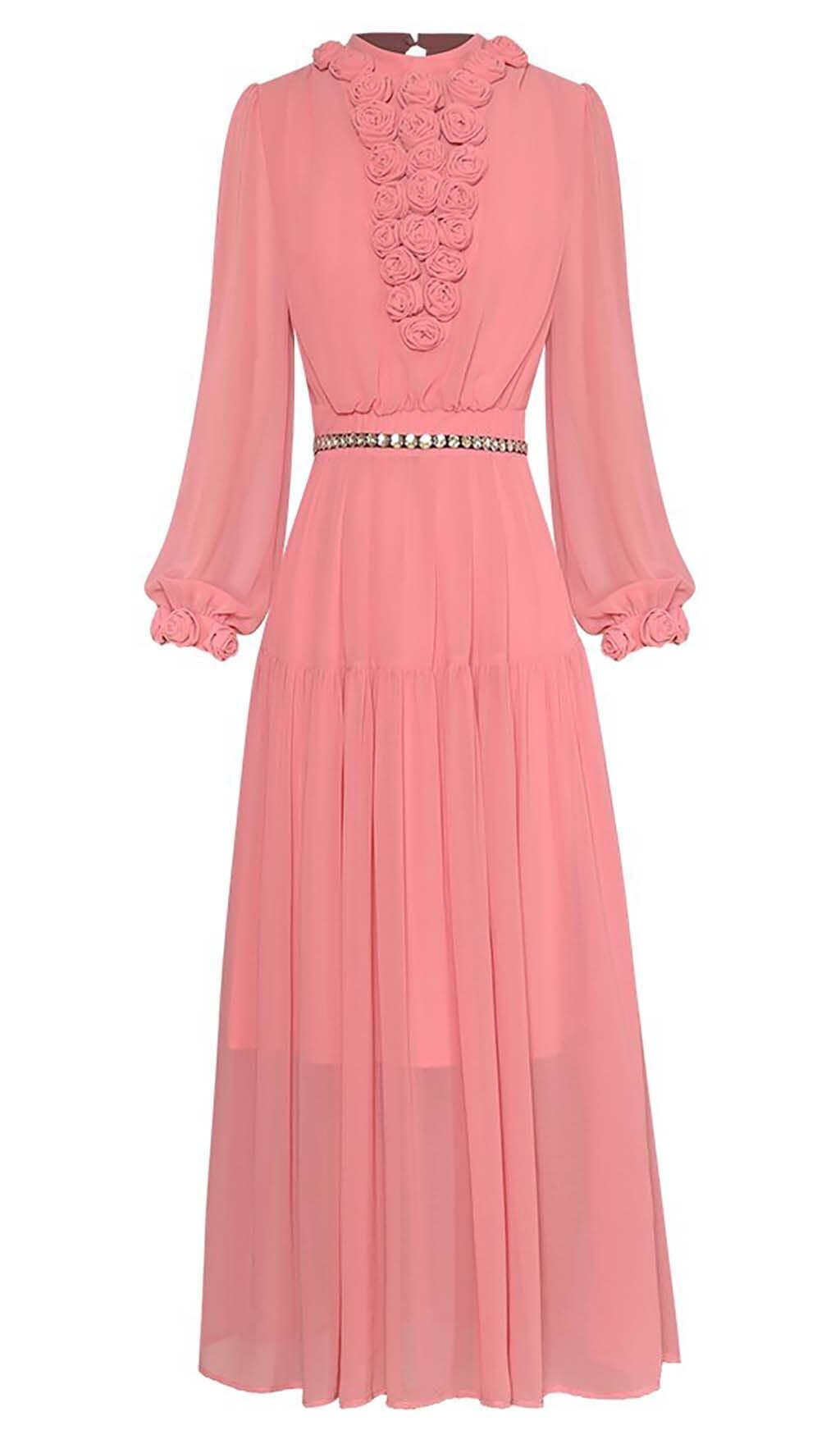 FLOWER LANTERN LONG SLEEVED LACE UP DRESS