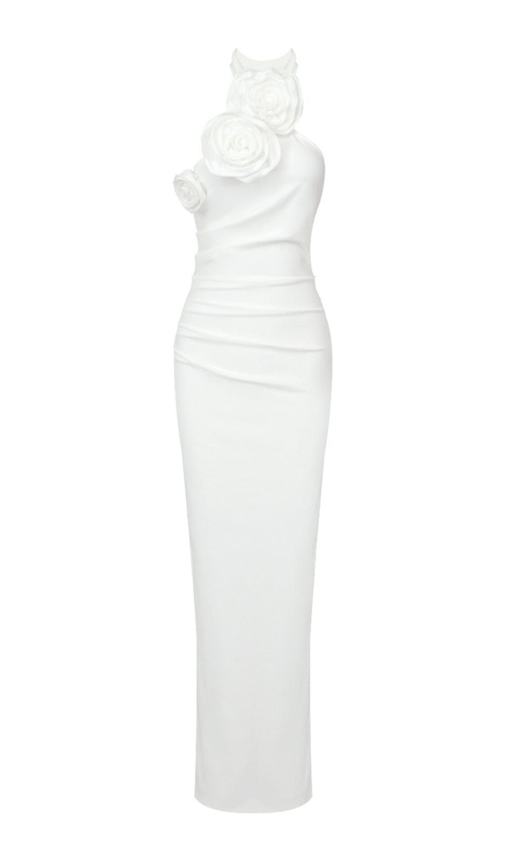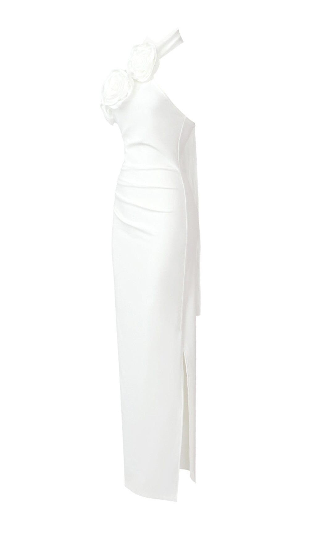 ALEENA WHITE MAXI FLOWER DRESS WITH OPENING