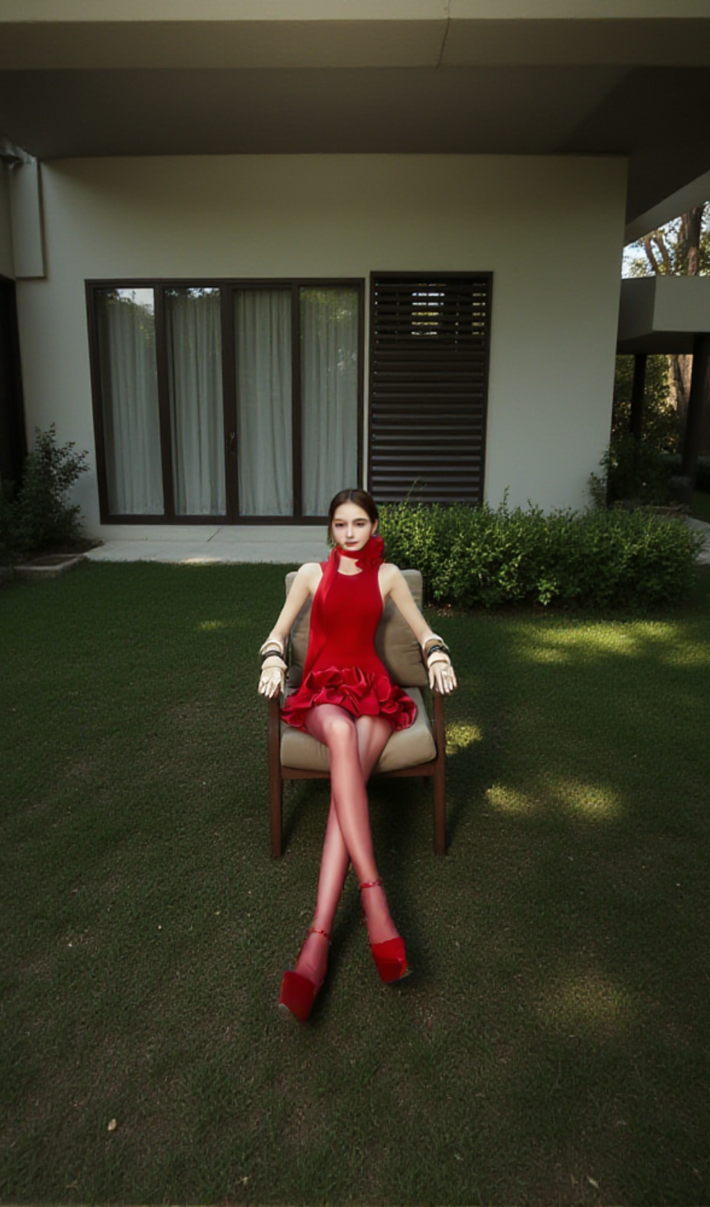 Effortlessly elegant, this sleeveless mini dress in red is adorned with delicate flower trim. Perfect for any occasion, the dress adds a touch of sophistication to your wardrobe. Crafted with high-quality materials, it ensures both style and comfort. Elevate your look with this stunning piece.