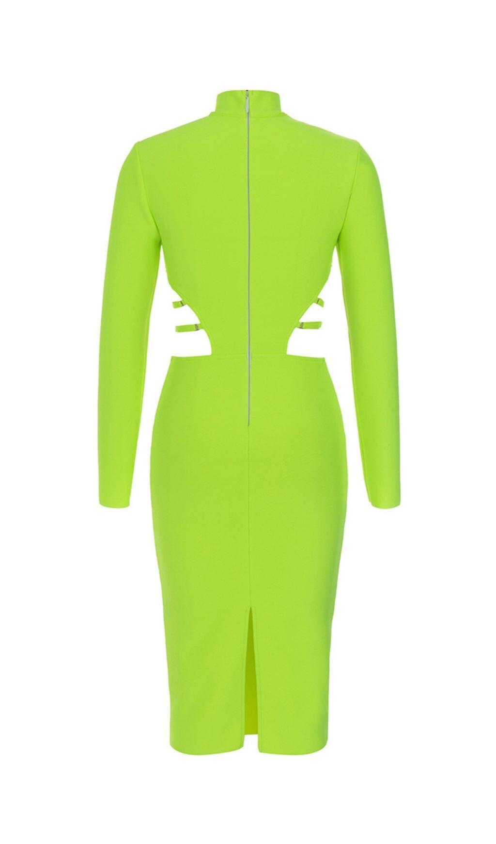 FLUORESCENT GREEN WAIST CUT-OUT SLIM-FIT DRESS