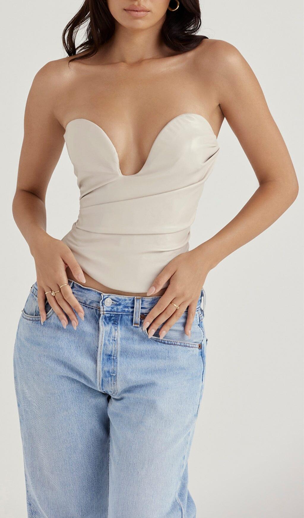 The artfully shaped plunge neckline in a flattering strapless cut and the longline silhouette beautifully gathered throughout make this corset a standout piece. It is fully lined for a comfortable and non-sticky feel, and has a zip closure at the back for easy on and off.
