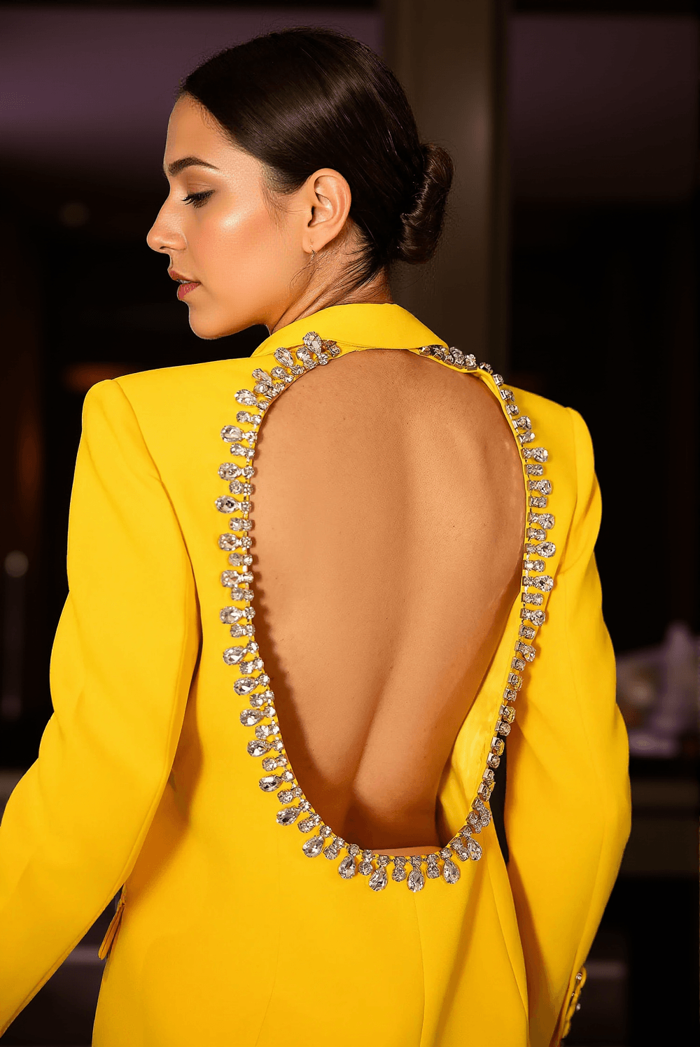 Fotoula Backless Rhinestone Cut-Out Blazer
